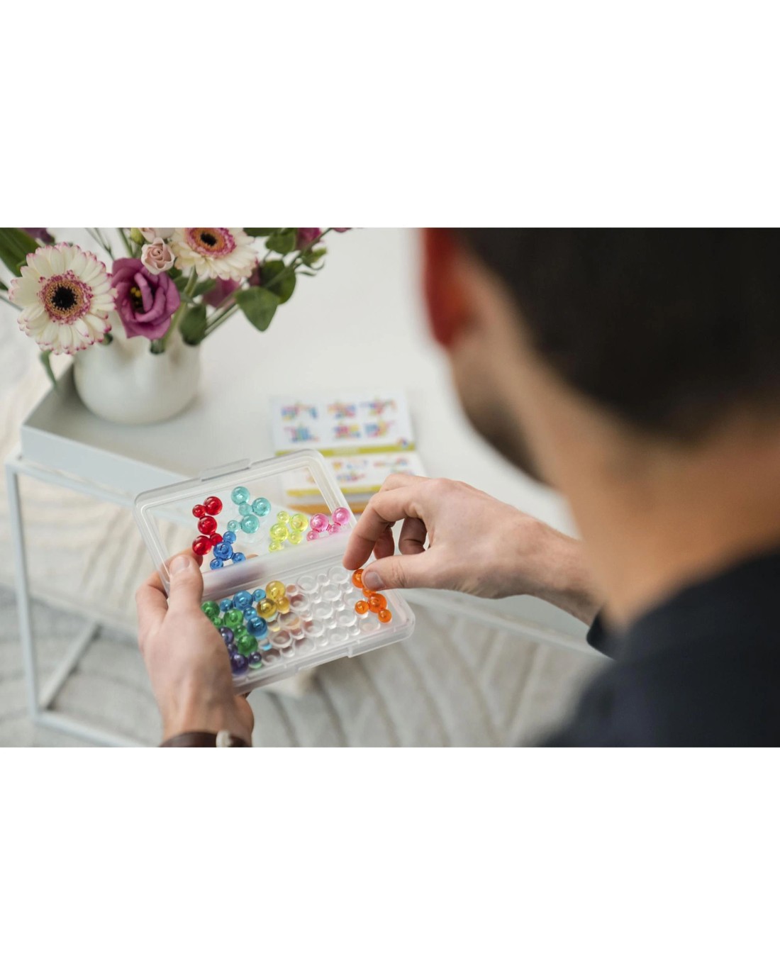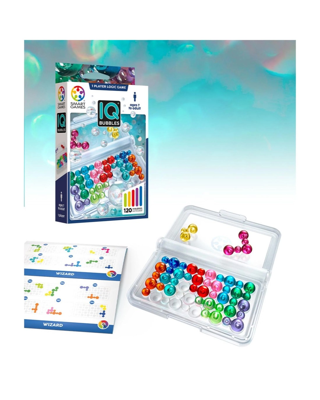 Test your brainpower with IQ Bubbles! This addictive puzzle game challenges players to fit all the colourful, transparent bubble pieces onto the travel-friendly gameboard/case. With 120 challenges to solve - from Starter to Wizard - IQ Bubbles is great for kids and adults! Ages: 7 + | Players: 1