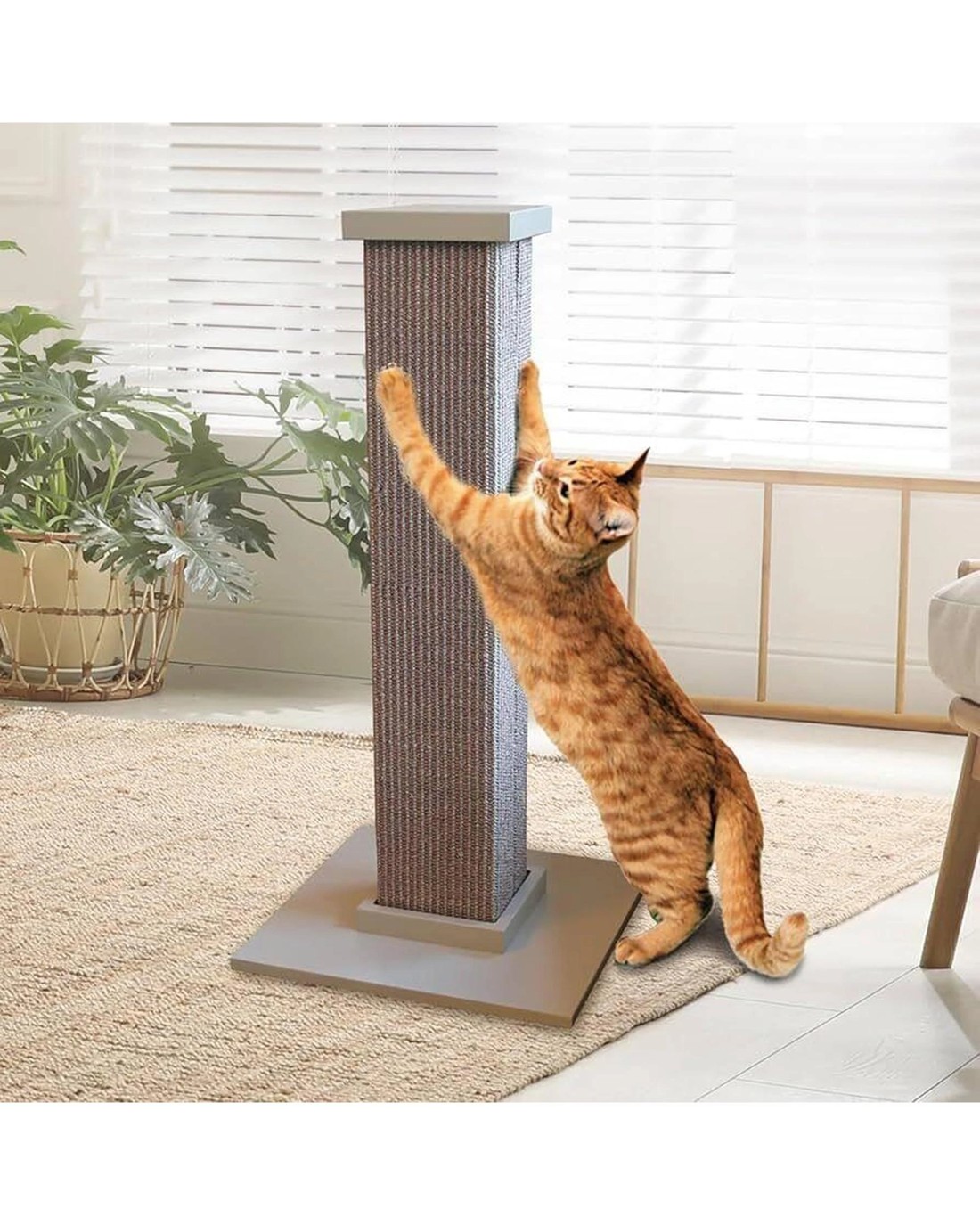 The SmartCat Ultimate Cat Scratch Post is made from natural woven sisal, which is more durable than wound sisal. This means that you will get much longer use out of your scratching post. The Ultimate Cat Scratch Post is a durable, tall, full-stretch post with a heavy base that is sturdy and wide so it won't tip over or wobble when your cat runs and leaps at it.