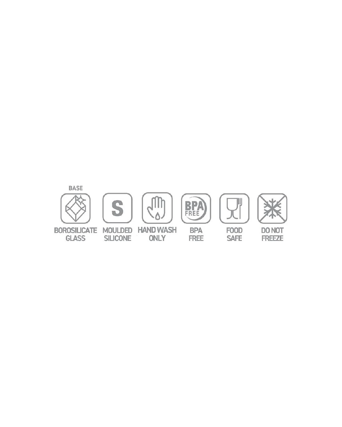This Smash Blue Glass Drinking Bottle is a stylish option to help you stay hydrated daily. This glass bottle comes with a comfortable, silicone band, a removable screw top cap, and an eye-catching, metallic finish.