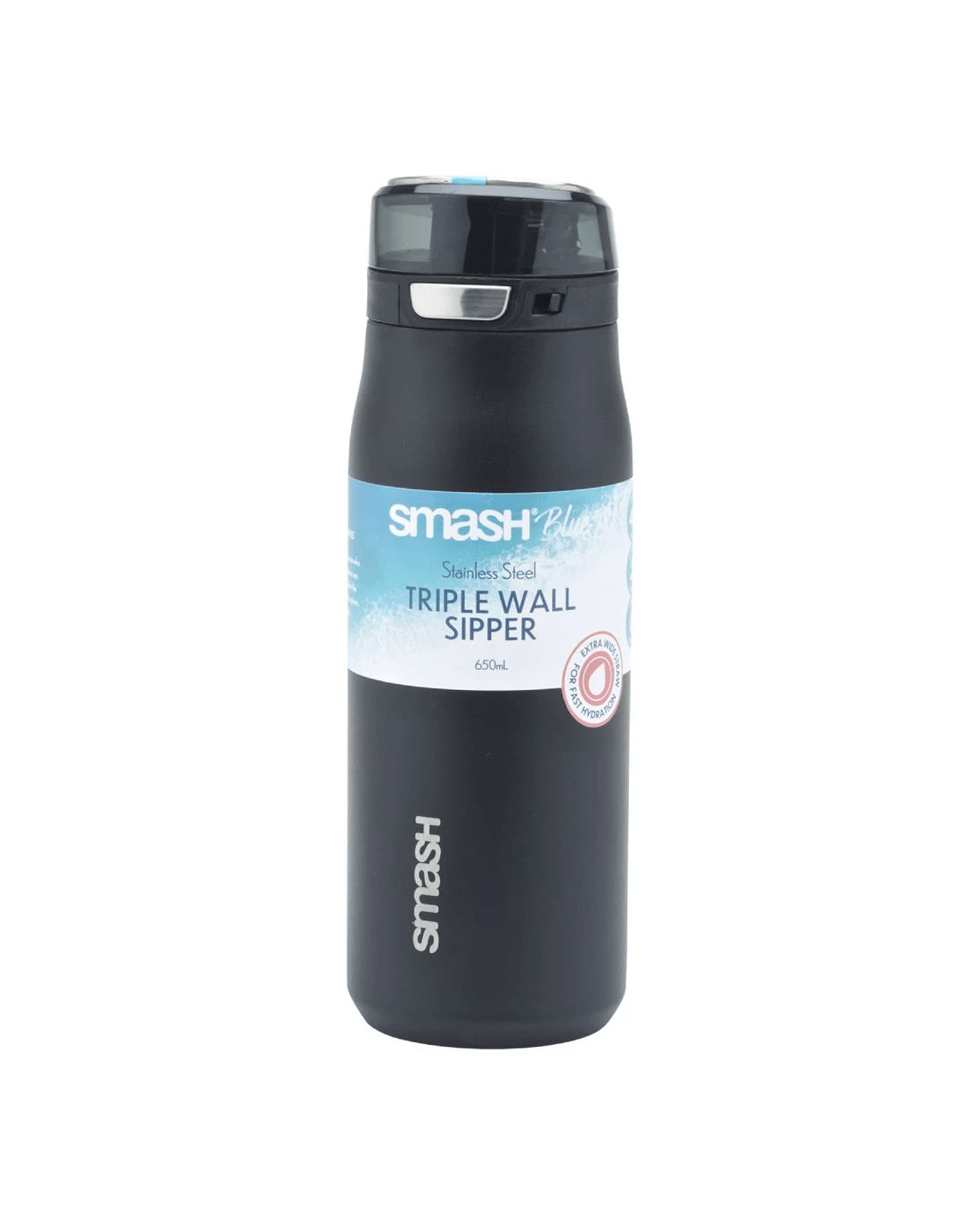 Sold by OfficeworksSmash Blue Triple Wall Sipper 650mL Black