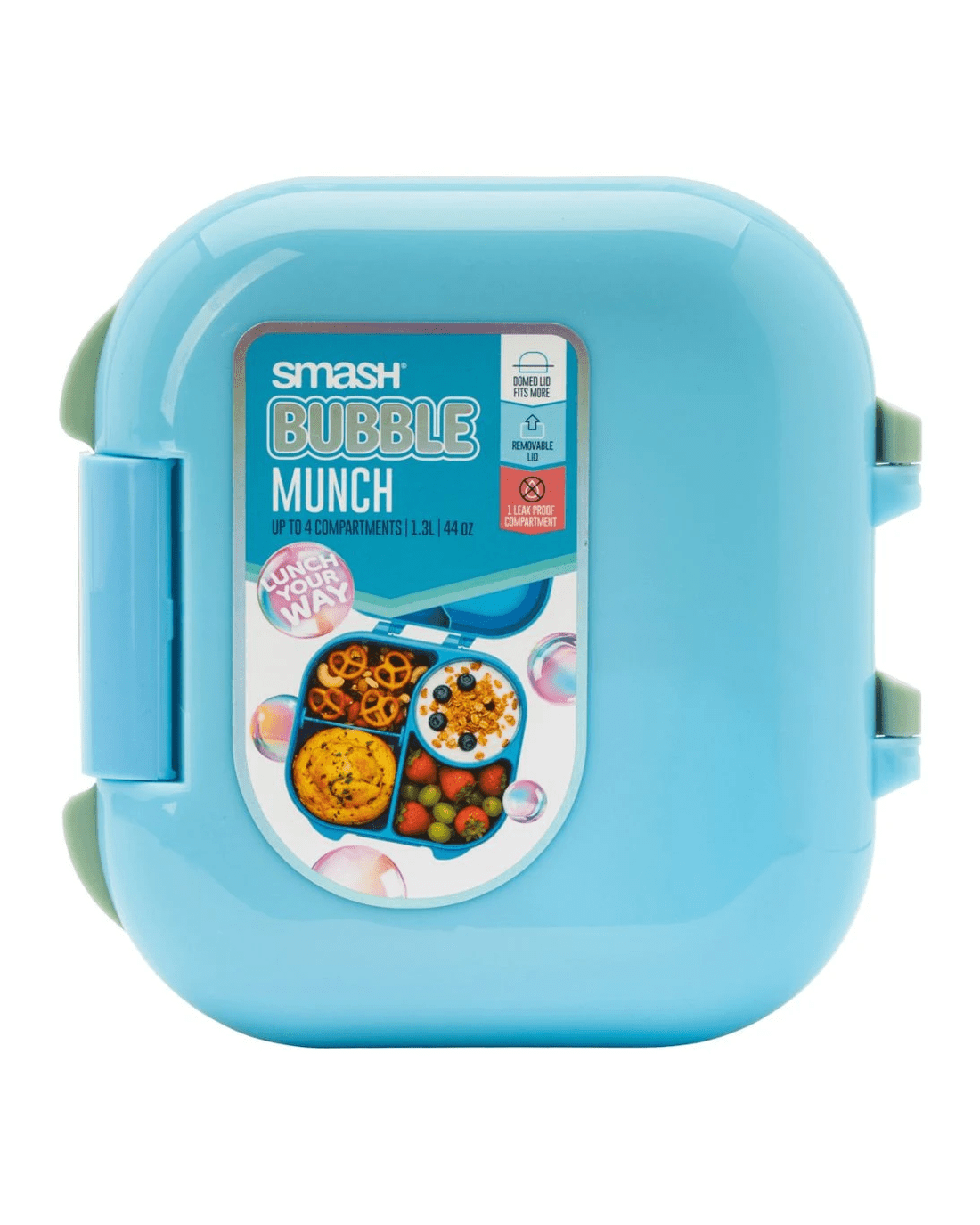 Make lunchtime easy and fun with the Smash Bubble Munch Bento Box. Featuring three compartments and an adjustable divider, it’s perfect for packing a variety of snacks or small meals while keeping everything fresh and organised. Designed for convenience, it includes a hinged lid, easy-open clip, and a leak-proof compartment for stress-free storage.