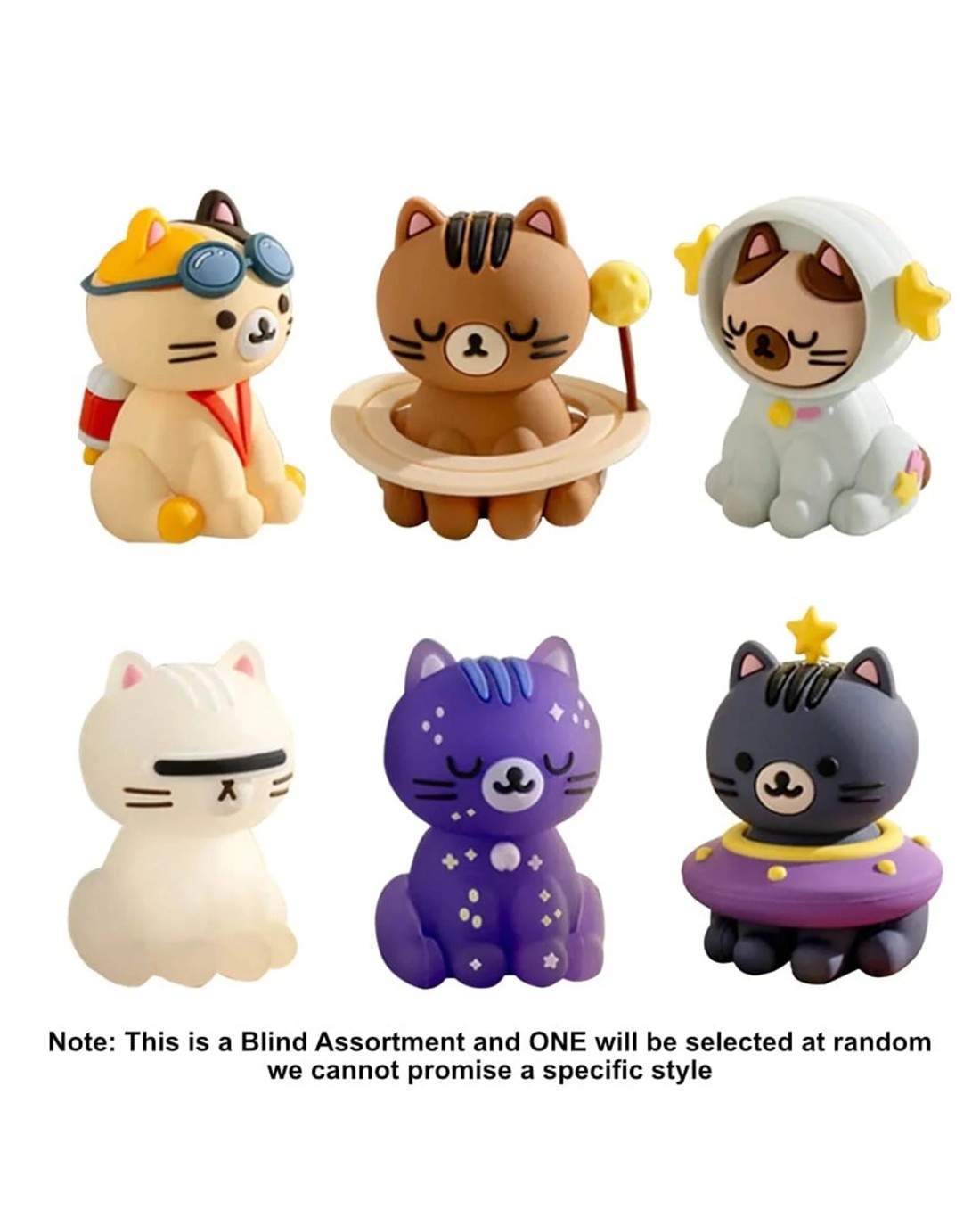 The Smoko Astrocats Blind Box Figure launches adorable cats into space with six cosmic kitty designs - each premium vinyl figure is ready for an interstellar adventure. Collect all Six: Purple Astrocat, Grey Astrocat with Purple Ring, Brown Astrocat, Grey Space Suit Cat, Calico Cat with Glasses and Clear Astrocat, and look out for the rare Glow-in-the-Dark Clear Astrocat that lights up your space even after dark! Which space explorer will land in your collection? Ages 15 +Contents