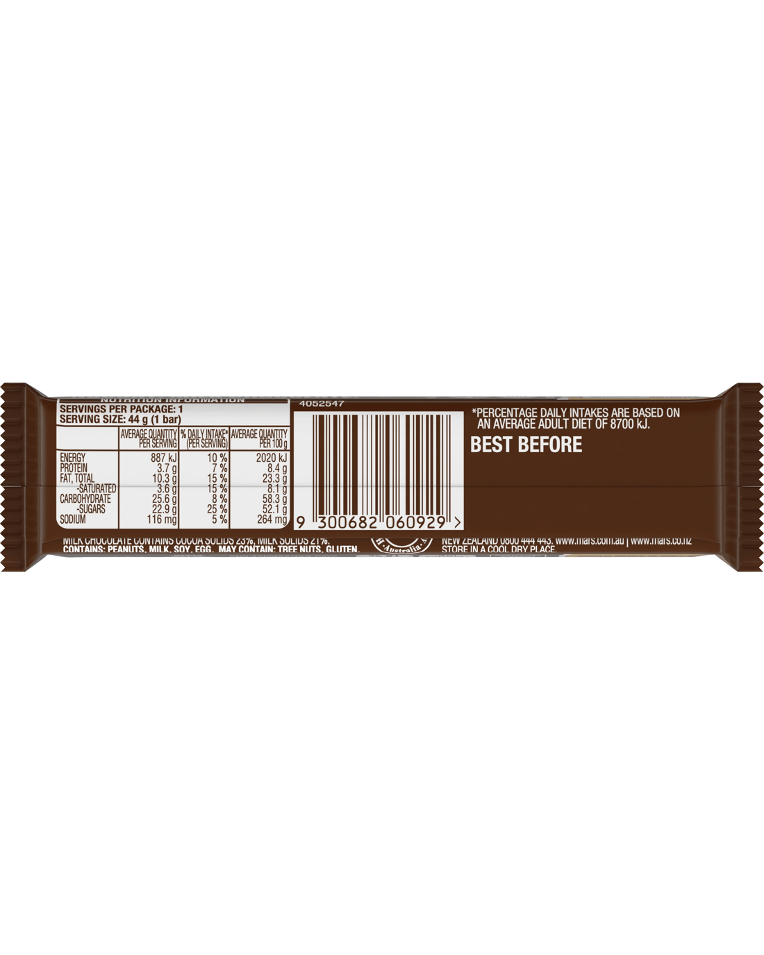 • Allergen information: Contains peanuts, milk, soy and egg. May contain tree nuts and gluten.