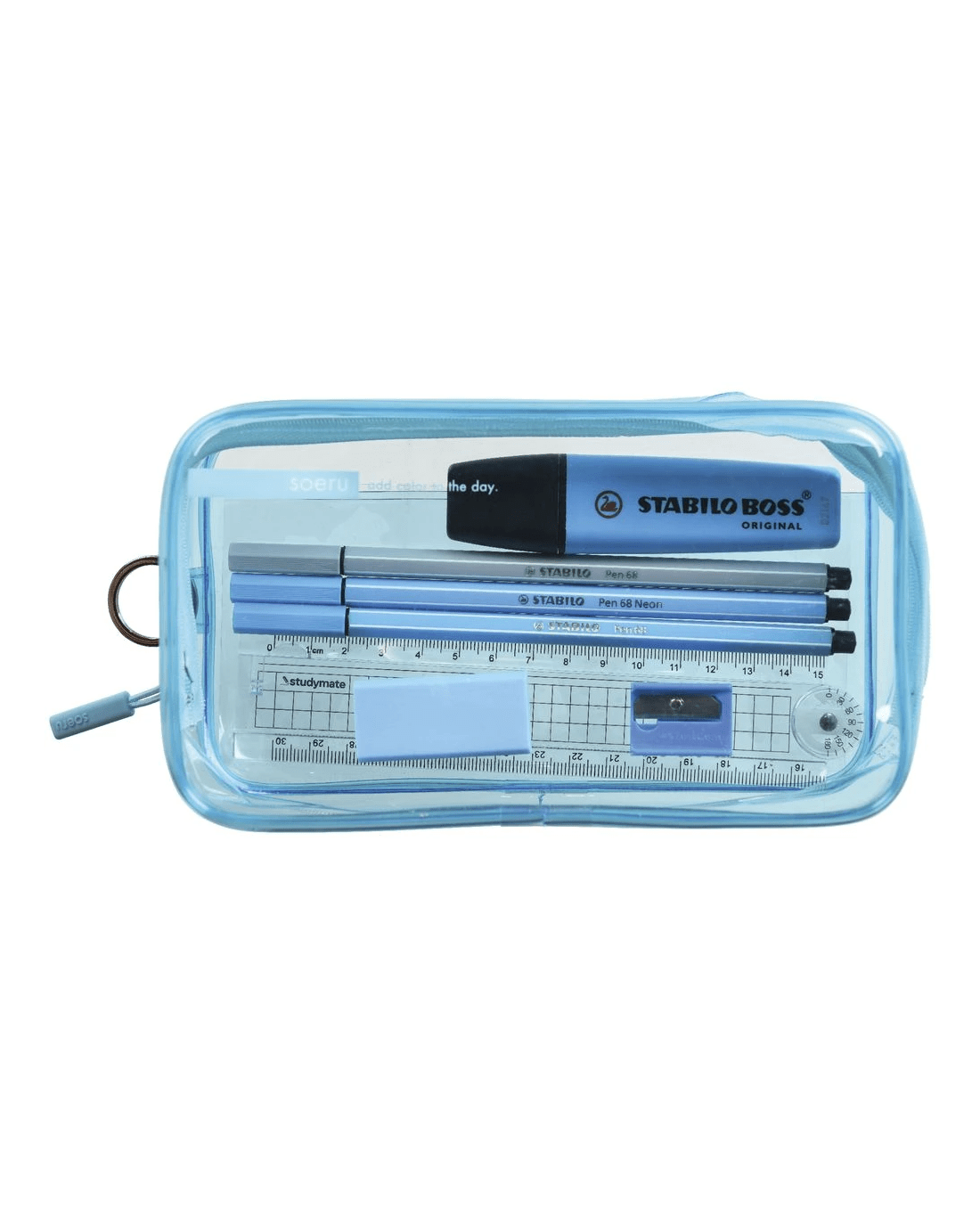 This Soeru Box Pen Case is made from transparent PVC, allowing you to easily retrieve whichever pens or pencils you need. It can hold up to 20 pens and comes with a pocket that can be used to divide your knick knacks, such as stickers or other small items.