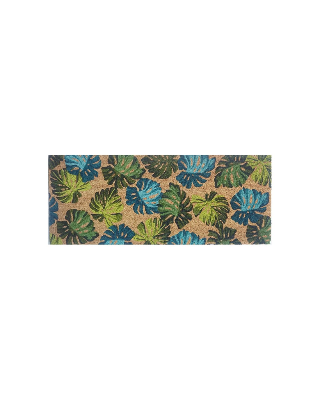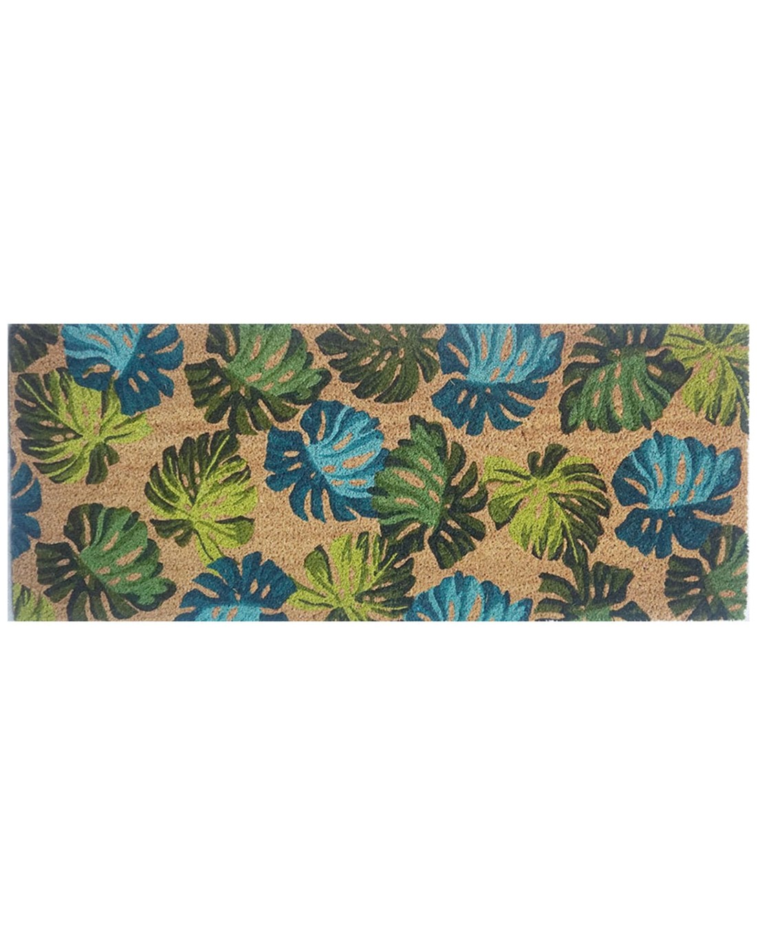 Solemate PVC Backed Coir Monsteria 45x110cm Slim Outdoor Stylish Doormat - Natural