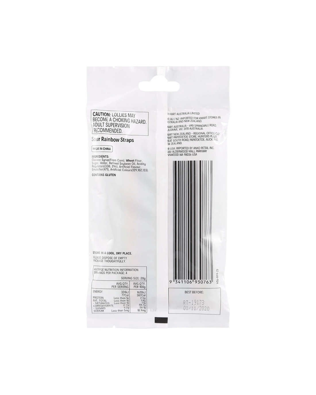 Sold by KmartSour Rainbow Straps Candy 80g