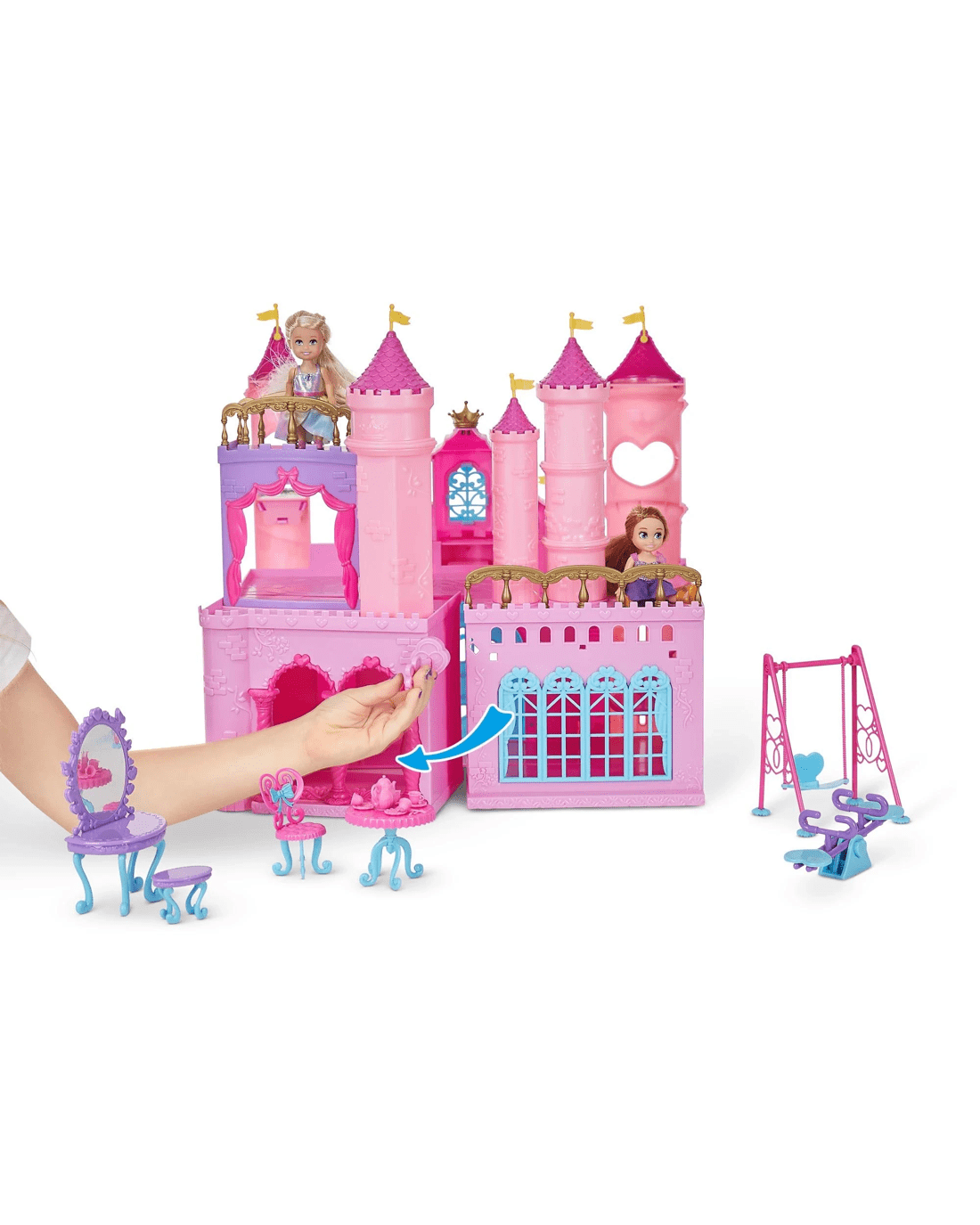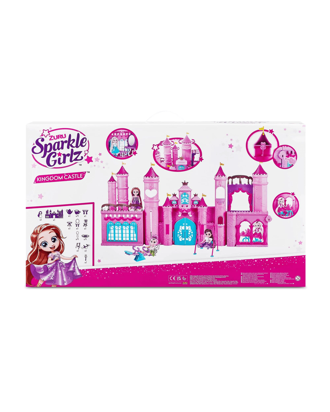 - Includes:1x Sparkle Girlz 4.5" Doll, 1x Removable Outfit, 1x Large Castle with Rotating Turrets & opening doors, 1x Secret Key, 1x Seasaw Set, 1x Swing Set, 1x Vanity Table, 1x Vanity Chair, 1x Table, 4x Chairs, 4x Teacup & Saucers