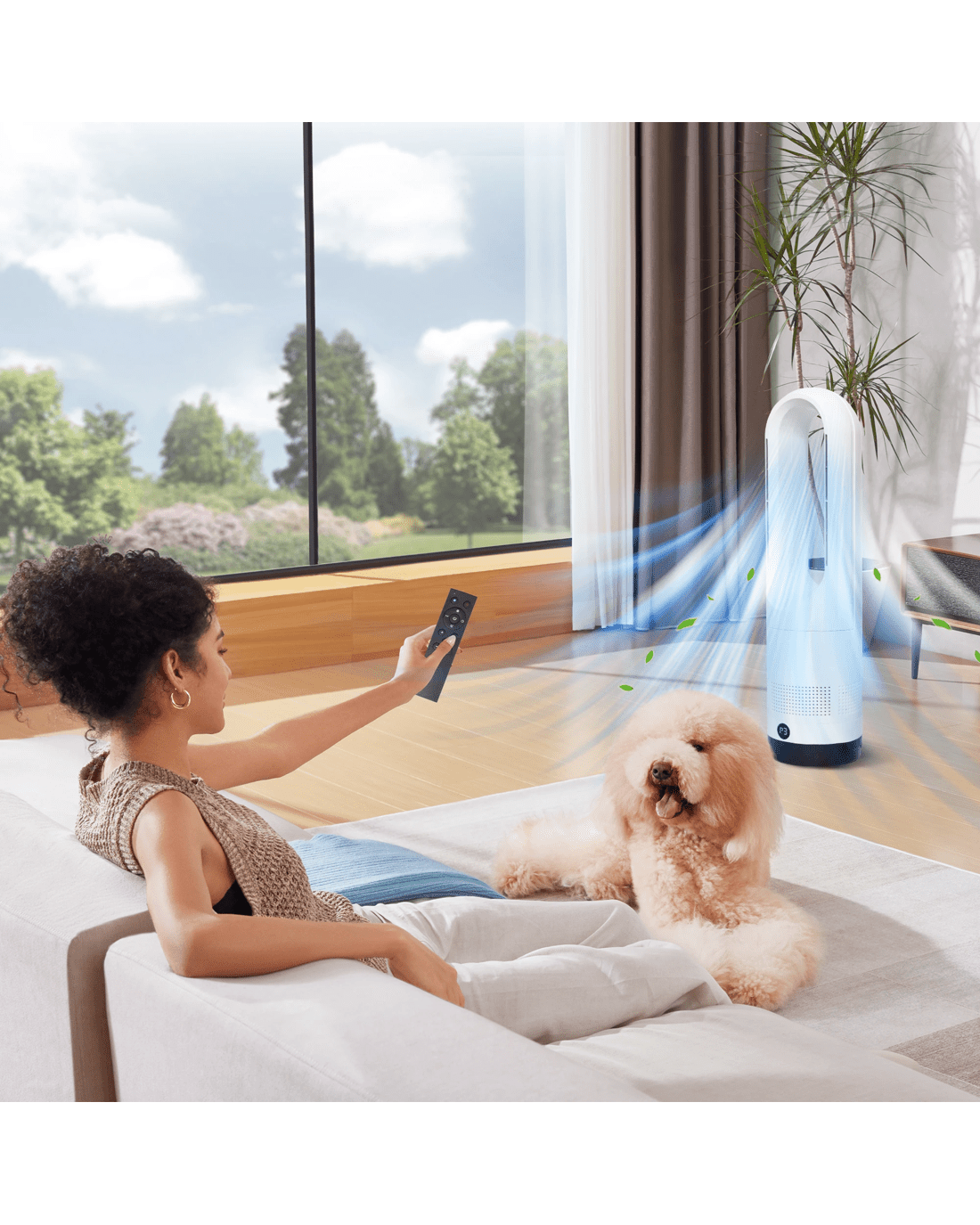 Spector 1200W Bladeless Fan & Heater — Stay comfortable all year round with this 2-in-1 bladeless tower fan and heater. Enjoy powerful warmth in winter and cool airflow in summer with 3 heat settings and 8 fan speeds. The 80° oscillation and 1–9 hour timer ensure even airflow and effortless comfort, while its quiet, bladeless design keeps your space safe and stylish.