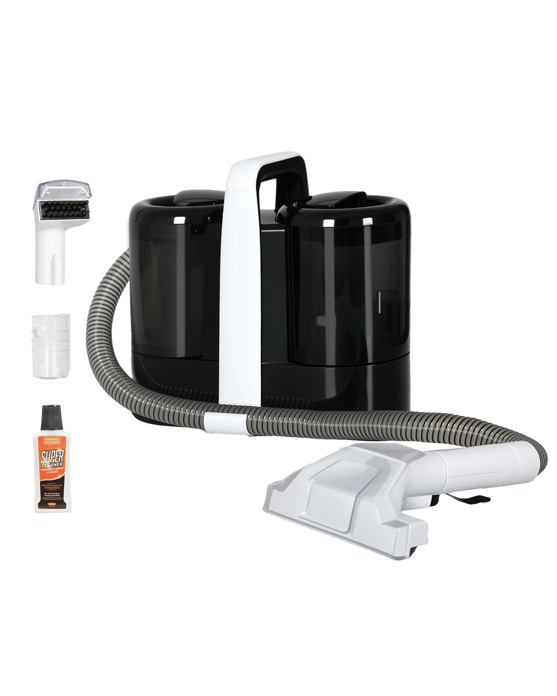 The Spector handheld upholstery cleaner comes complete with large and small spray brush heads, a self-cleaning head and a 250ml cleaning solution, making it a versatile portable spot cleaner and efficient carpet cleaner machine for everyday home and car use. Designed for convenience, durability and performance, the Spector cleaner is your go-to solution for fast, targeted cleaning wherever stains appear.
