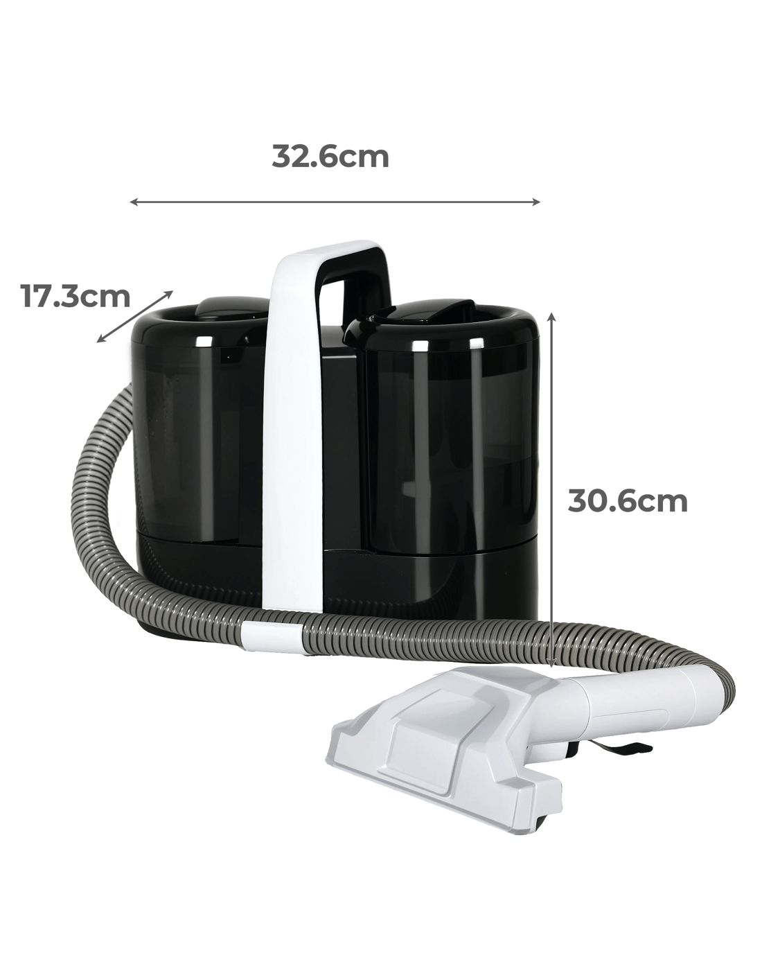 Built with a practical dual-tank system, this Spector carpet spot cleaner keeps 1.5L of clean water and 0.8L of dirty water fully separated, ensuring more hygienic and effective cleaning every time. Its extended 1.2m hose and 5m power cord provide excellent reach, making this portable carpet cleaner ideal for cleaning stairs, corners, sofas and car interiors without hassle.