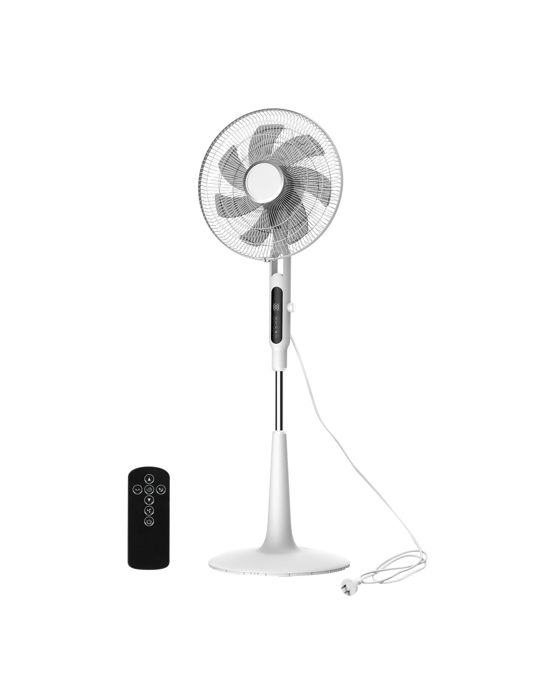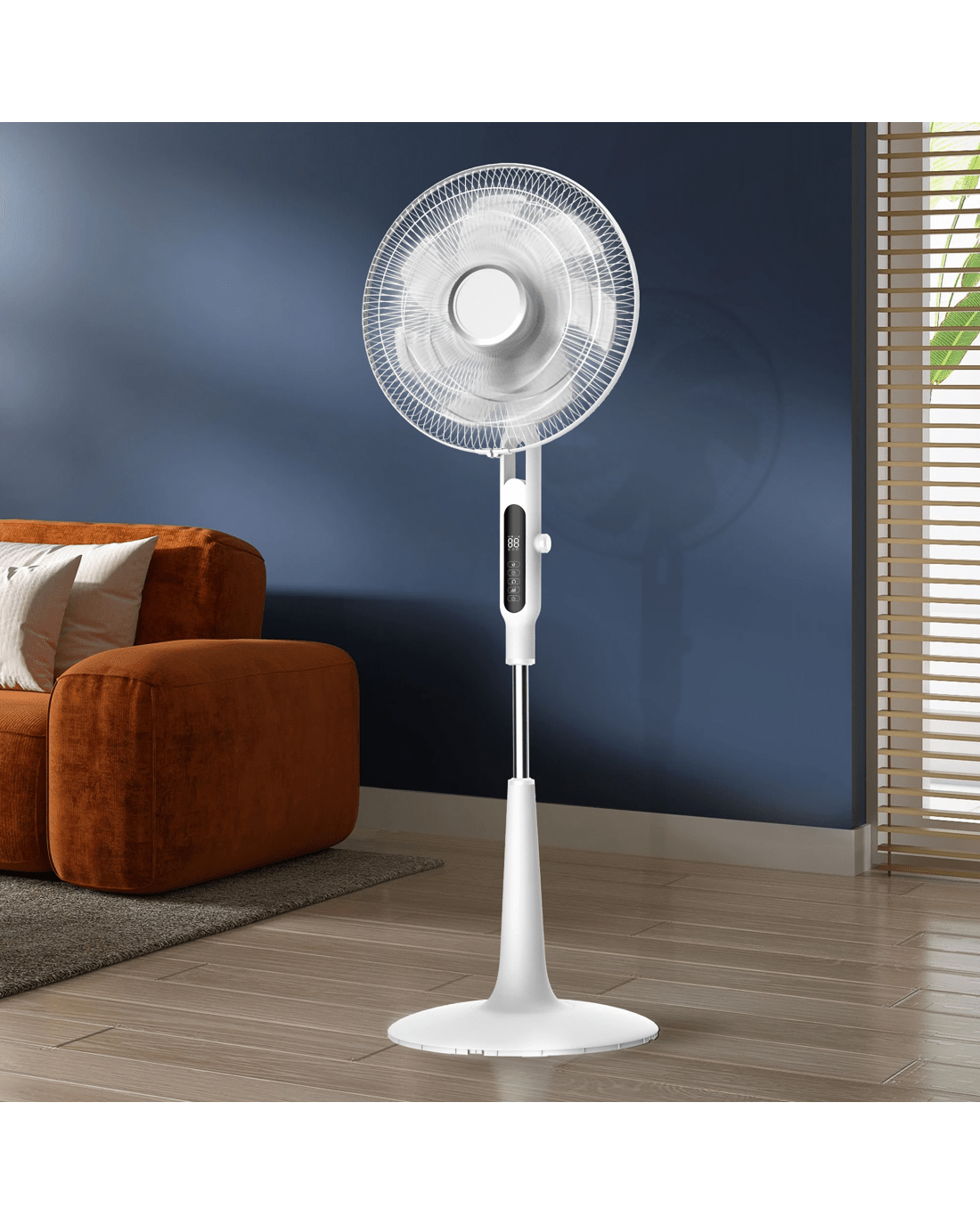 Its 150° oscillating range delivers widespread coverage, while the included remote allows seamless control from across the room. Powered by a quiet yet efficient 40W motor, this fan combines strength with subtlety. Lightweight, simple to clean, and perfect for bedrooms, offices, or lounges—it’s modern cooling made effortless.