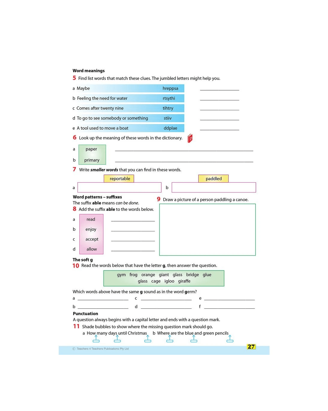 This Spelling Conventions Book is part of a series that is a continuum of structured curriculum-based learning from Foundation to Year 6. The spiralling program of developmental words, engaging activities, and games, combined with the easy allocation of specific ability groups, allows for all students to be catered for. The Difficult Words section and the My Words section also provide opportunities for extension within the class group.