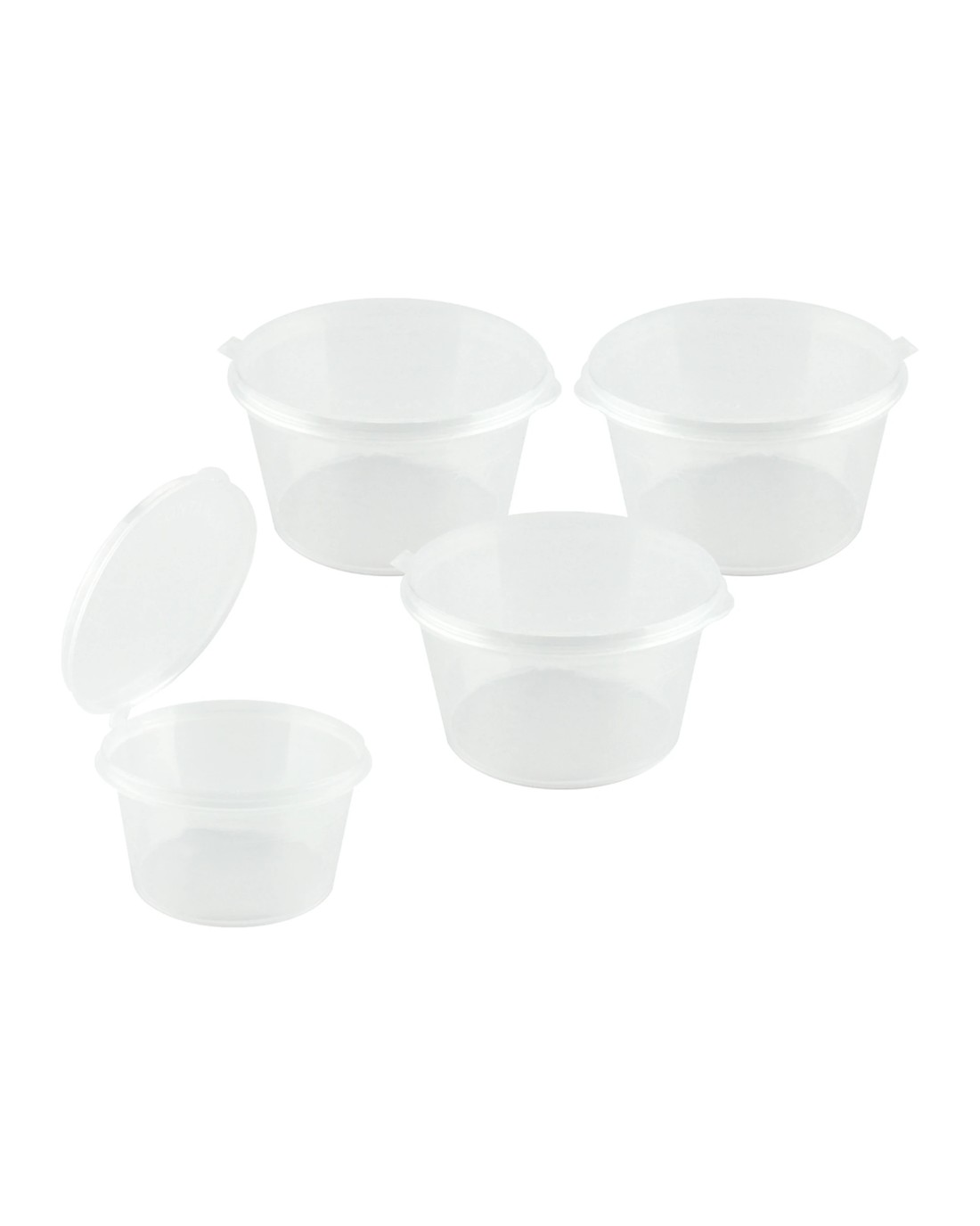 These super handy condiment containers with hinged lids are perfect for holding salad dressing, vinegarette, dipping sauces like tomato, sweet chilli or soy, mayonnaise, aioli, mustards, jam and cream. Use these plastic containers at barbeques, picnics, parties, food truck events, take-away shops and cafes!