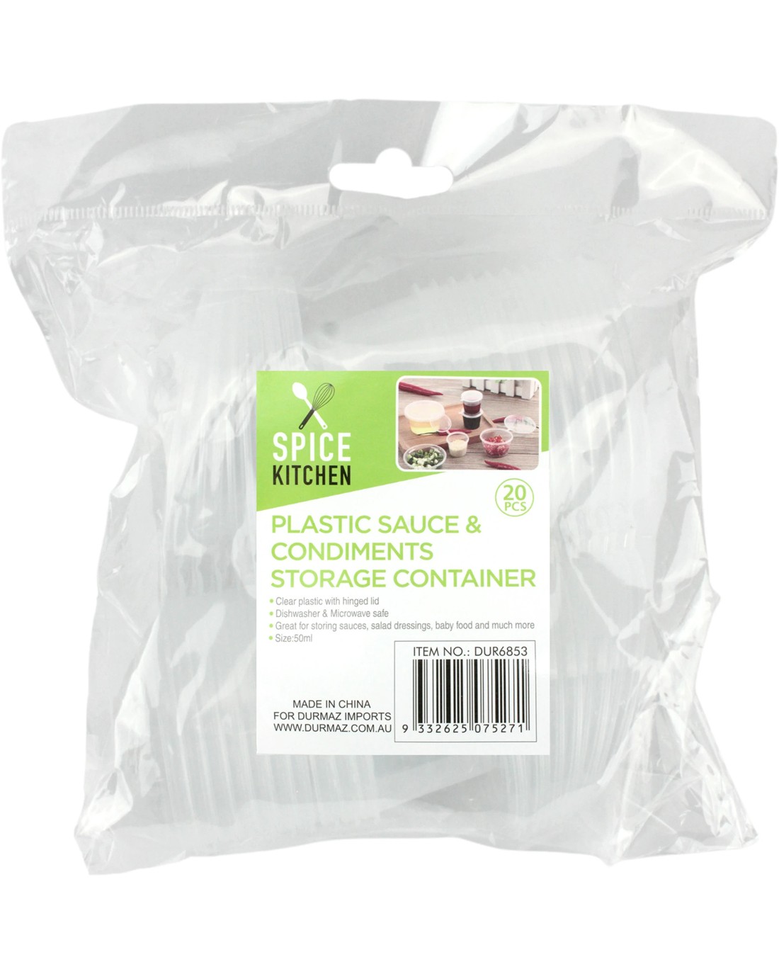 Spice Kitchen Sauce Containers with Hinged Lids 50ml Pack of 20 - Clear