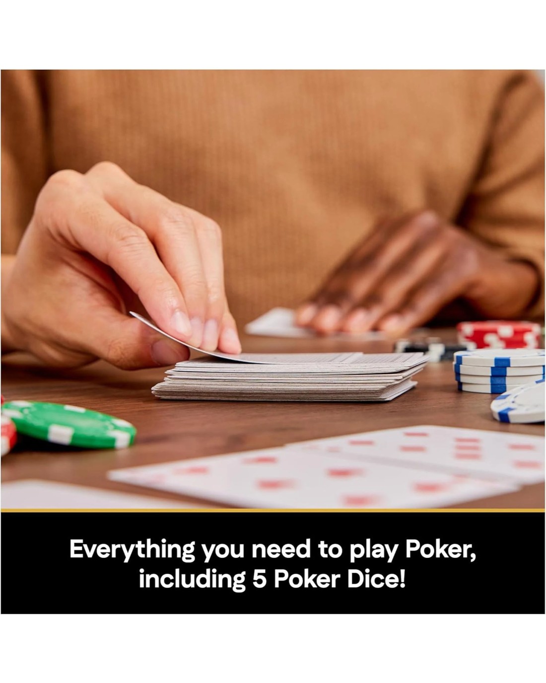 • Everything You Need: For 2 or more players this set includes 300 professional weight poker chips, 1 deck of cards, 1 dealer button, 2 betting buttons, 5 poker dice, and instructions