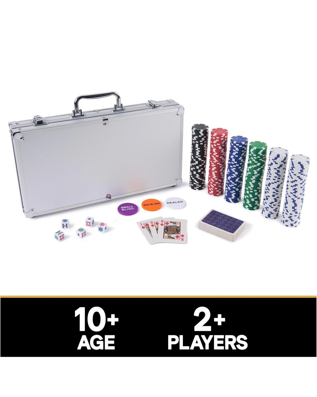 Get your crew to the poker table and get ready for a night of casino family games. This Cardinal Classics 300-Piece Poker chip set is best-in-class. This set includes 300 professional weight poker chips, 1 card deck, 1 dealer button, 2 betting buttons, 5 poker dice, and an instruction sheet. You will love the sturdy and convenient aluminum storage case to carry your casino chips and poker cards. From family game night to the casino poker table top, you are in for a fun challenge with this all-inclusive set. When people play the classic game of poker today, they're most likely playing Texas Hold 'Em. The most popular poker game in America today, Texas Hold 'Em is played in tournaments and homes across the country. Play around the dinner table with family. No matter your poker skill level or experience, get out your card shuffler and this set will have you ready for a classic poker night with friends or family. Ages: 10 + | Players: 2 - 10