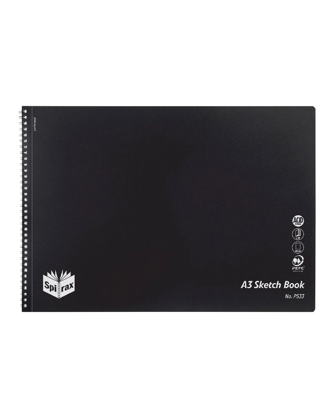 The Spirax P533 Sketch Book is A3 sized and landscape orientated making it ideal for drawing, doodling and sketching. It features a durable polypropylene construction to protect your pages against damage and twin spiral binding to keep them secure. The pages have a 110 gsm construction, are acid-free and are perforated for easy tear out.