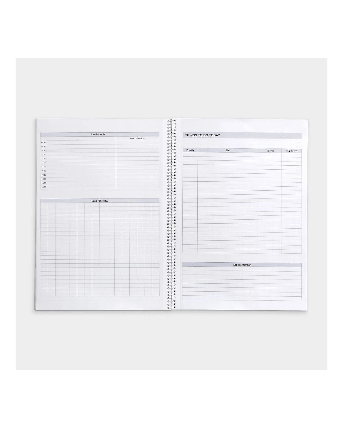The Spirax To Do Book has a template format that includes priority, list, appointment, phone, completed and more. It features an elastic pen loop and removeable business card panel to keep your essential items handy. The pages are protected by a durable cardboard cover and are perforated for easy tear out.