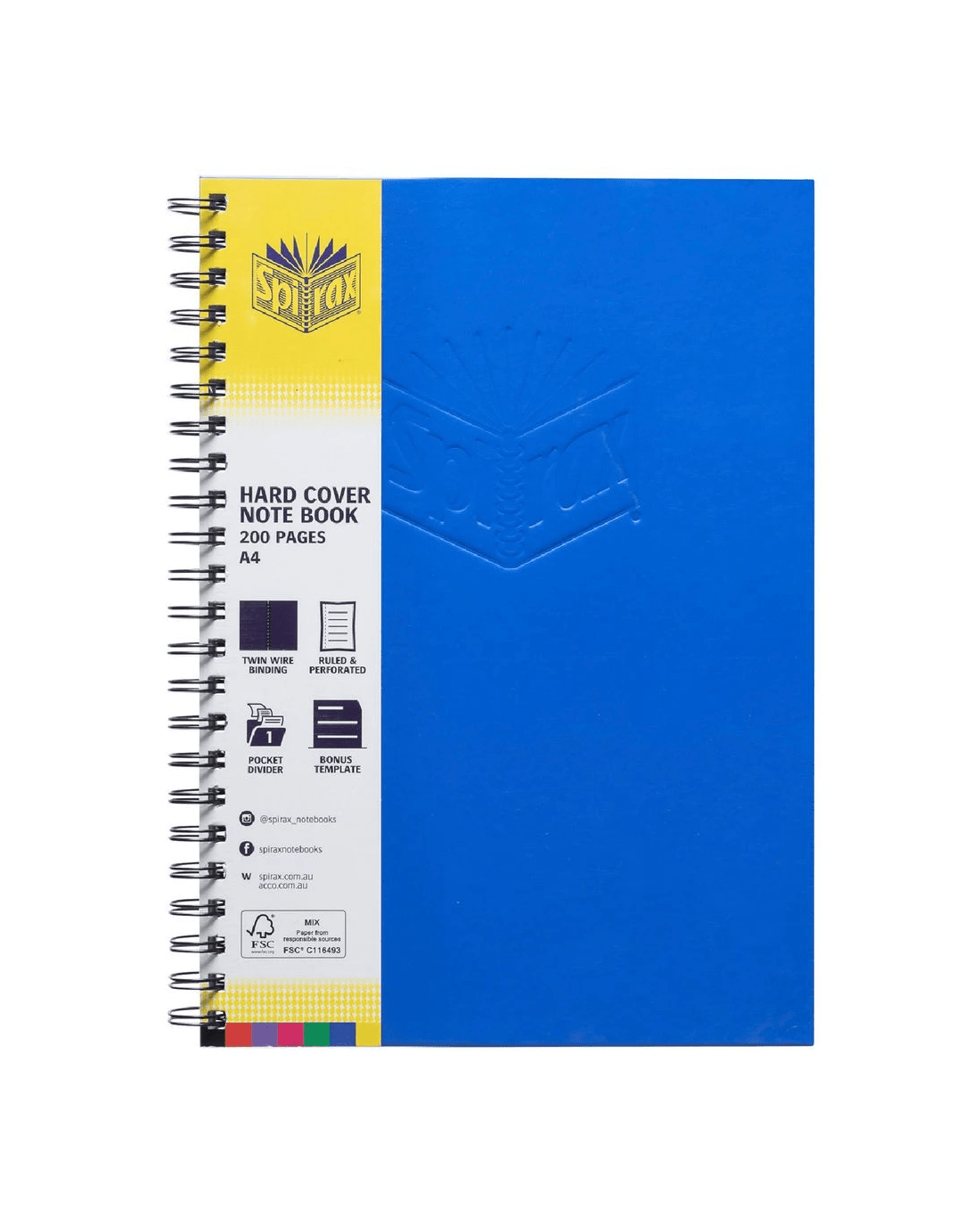 The Spirax A4 Hard Cover Notebook is spiral bound for added strength and durability. The notebook is great for taking notes at home, in school or at the office.