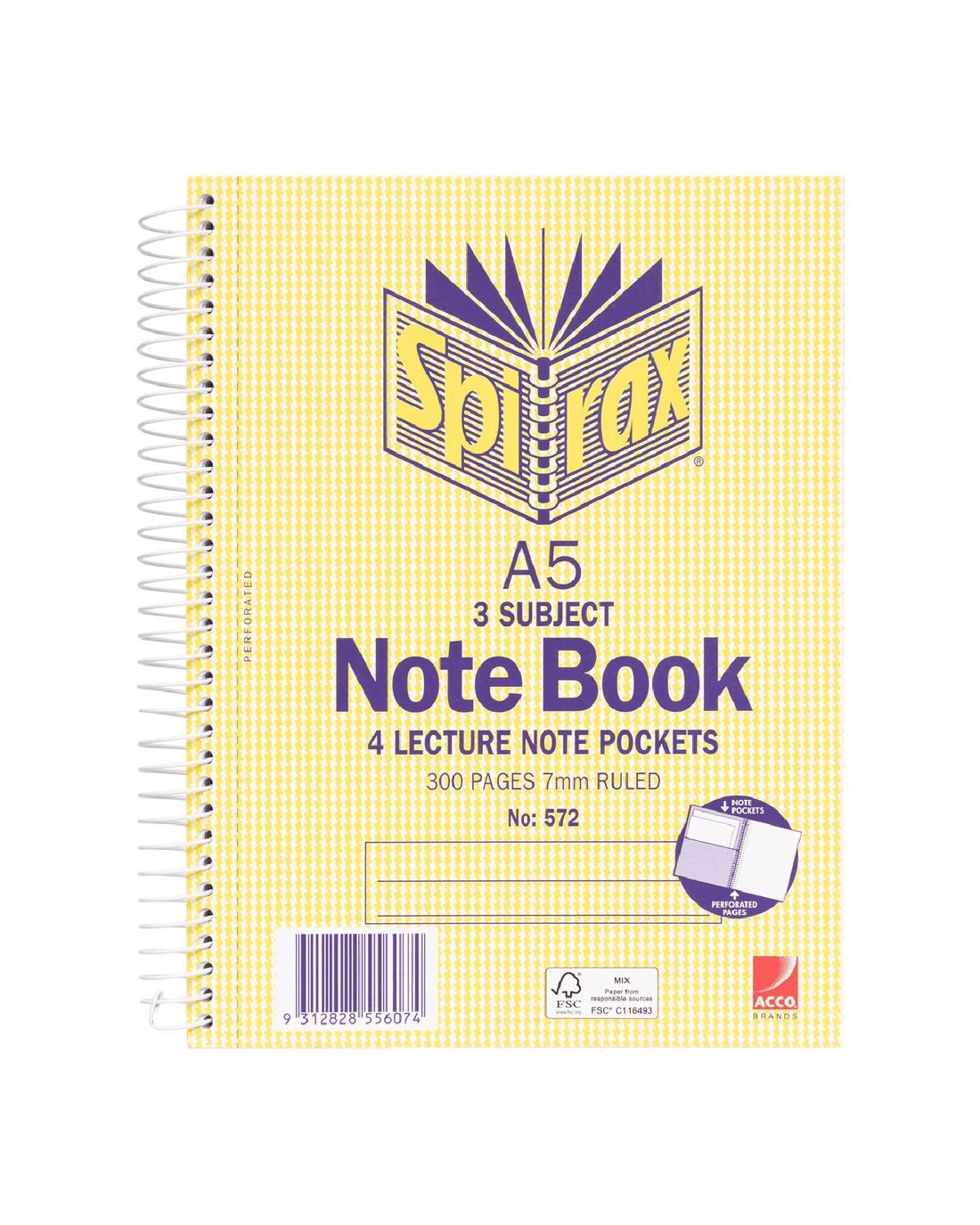 Spirax No. 572 A5 3 Subject Notebook 210 x 148mm 300 Page