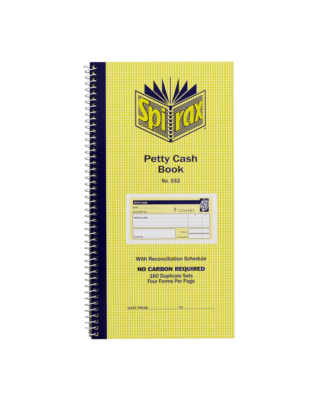 Spirax No.552 Carbonless Petty Cash Books utilise NCR paper to make crisp copies without the need for carbon sheets. This book is spiral bound to help you keep all of your copies in the same place. Each page has printed templates so you can quickly fill in the required details.