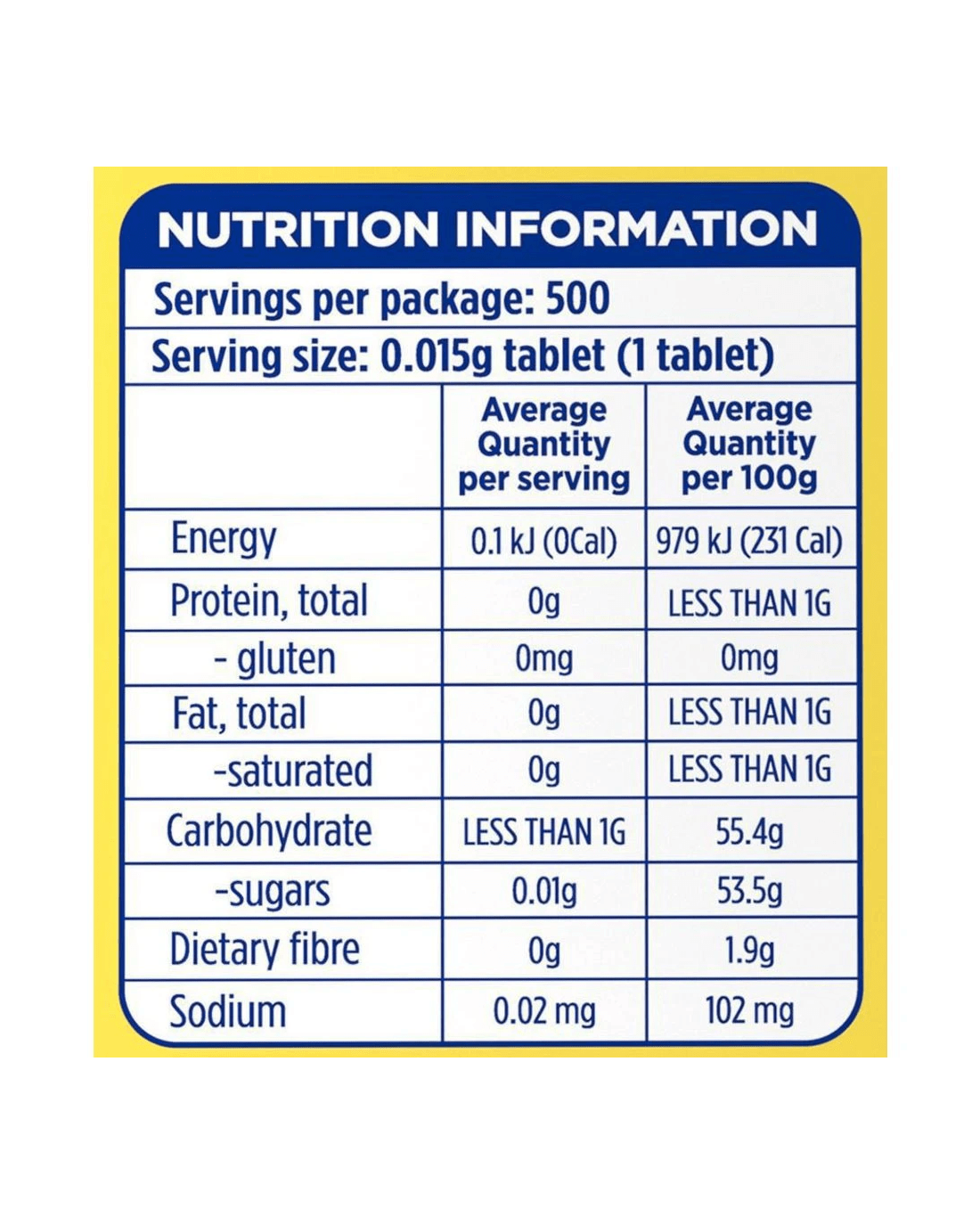 • Each tablet sweetens just like 1 teaspoon of sugar without the calories, so it's easy to personalise the taste of your beverage with the right amount of sweetness.