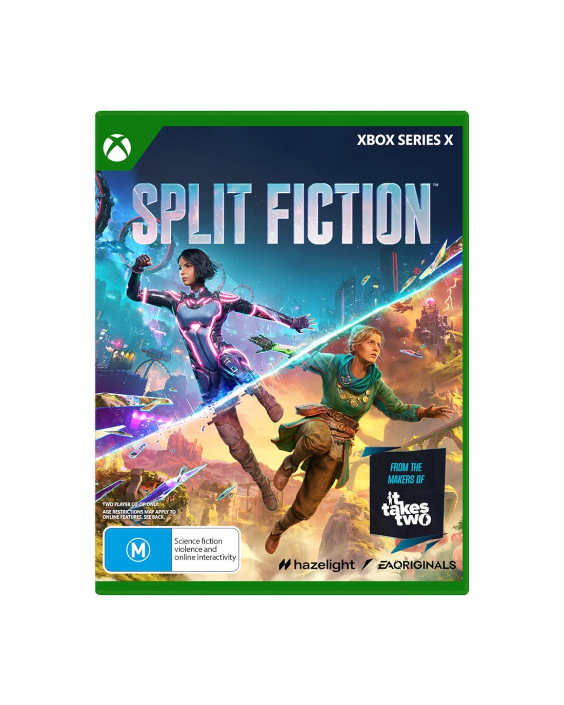 Embrace mind-blowing moments as you're pulled deep into the many worlds of Split Fiction, a boundary-pushing co-op action adventure from the studio behind 2021 Game of the Year Winner It Takes Two. Mio and Zoe are contrasting writers - one writes sci-fi and the other writes fantasy - who become trapped in their own stories after being hooked up to a machine designed to steal their creative ideas. They'll have to rely on each other to break free with their memories in-tact, working together to master a variety of abilities and overcome diverse challenges while jumping between sci-fi and fantasy worlds in this unexpected tale of friendship. Split Fiction is a unique action-adventure experience that keeps you on the edge of your couch with unexpected moments. One minute you're taming adorable dragons and the next you're fighting as cyber ninjas, escaping terrifying trolls, or dodging hover cars thrown by a robotic parking attendant. It's weird, it's wild, and it's designed to be shared. Grab a friend and get ready to overcome any obstacle thrown your way.
