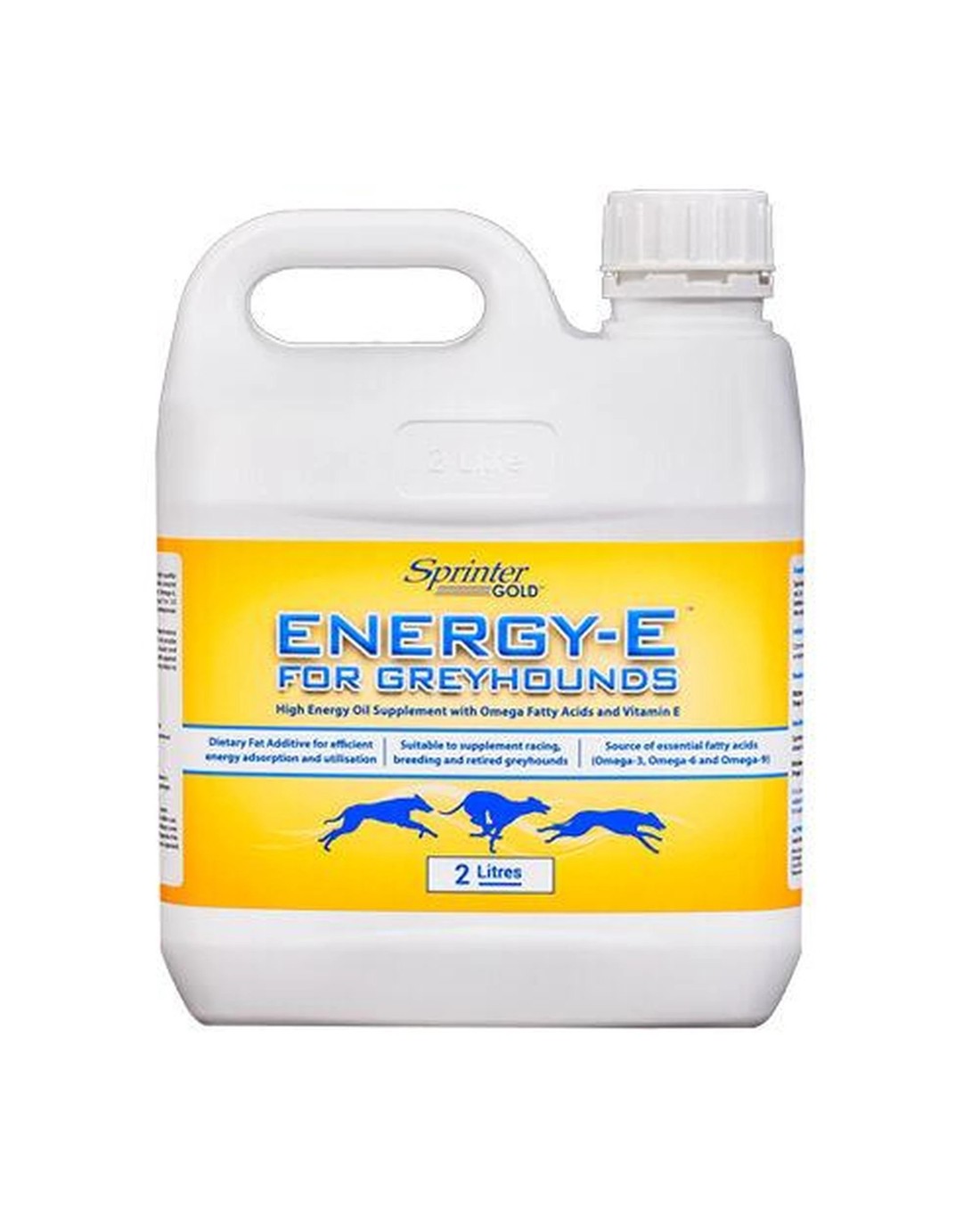 Greyhounds can utilise oils (fats) as an high energy source, even at sprint race speed, as compared to other sprint athletes. ENERGY-E has 3 important benefits when added to a greyhounds diet.
