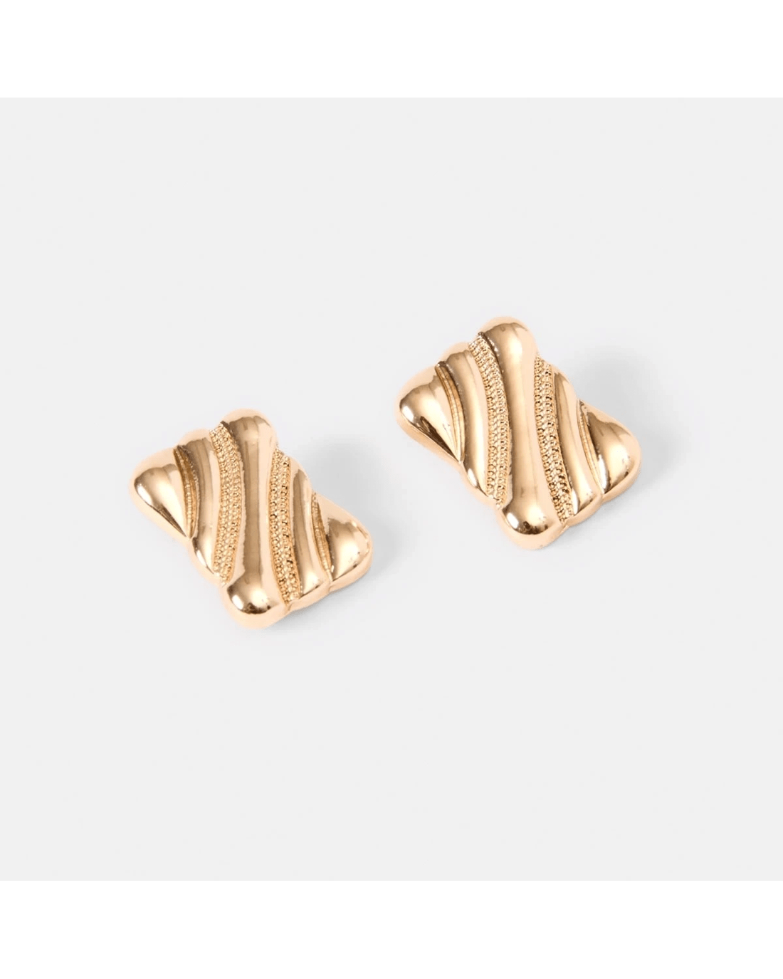 Square Linear Stud Earrings - Gold Tone