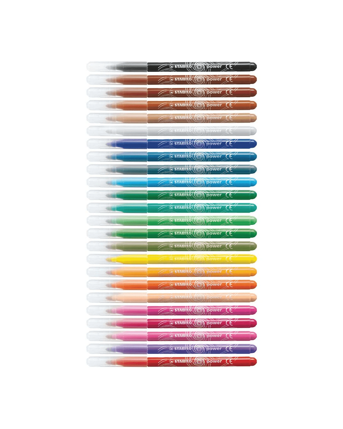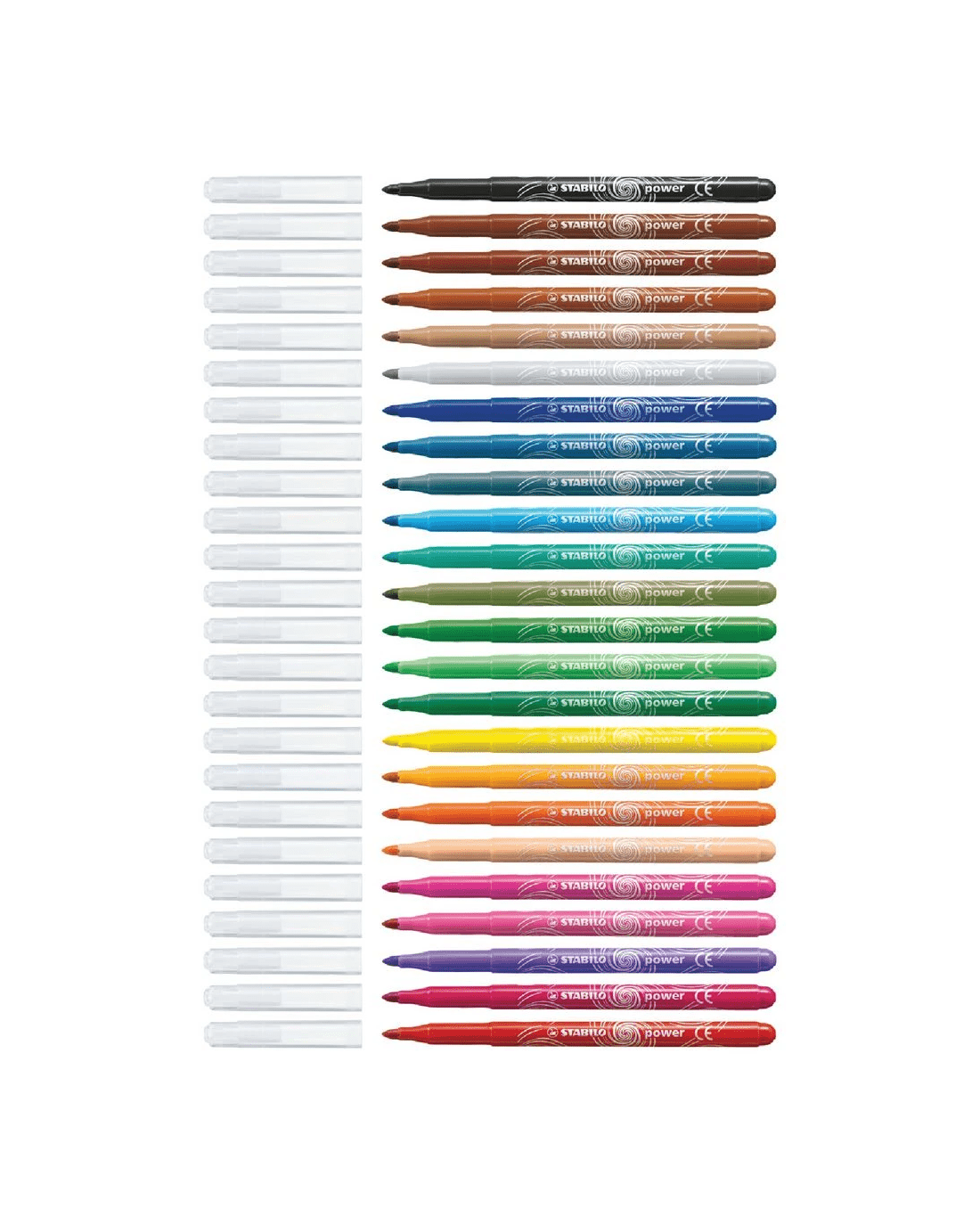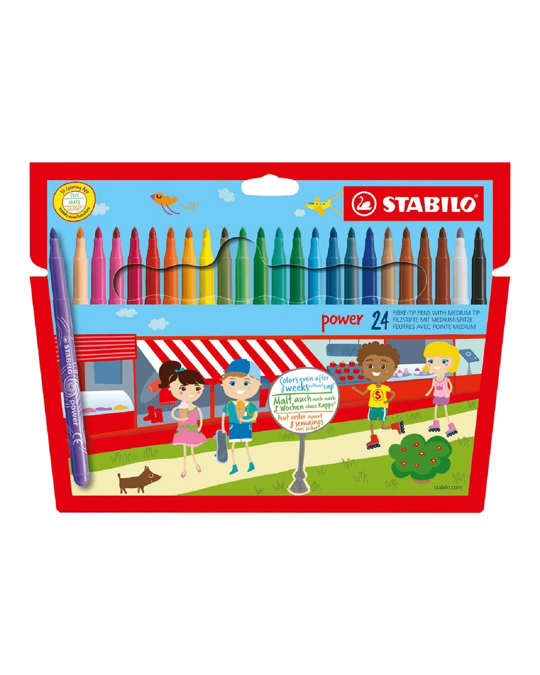 These Stabilo Power Max Pens contain highly durable ink that won't dry out even if left without the caps on for up to 5 weeks. Each tip produces a bold 2 mm line and is push resistant making it ideal for use at school or at home.