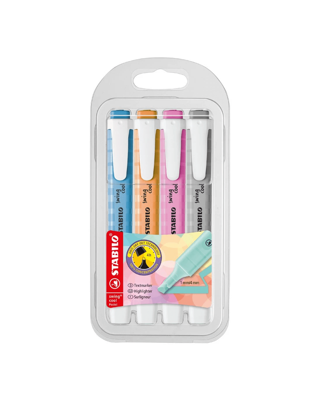 Sold by OfficeworksStabilo Swing Cool Highlighters Pastel 4 Pack