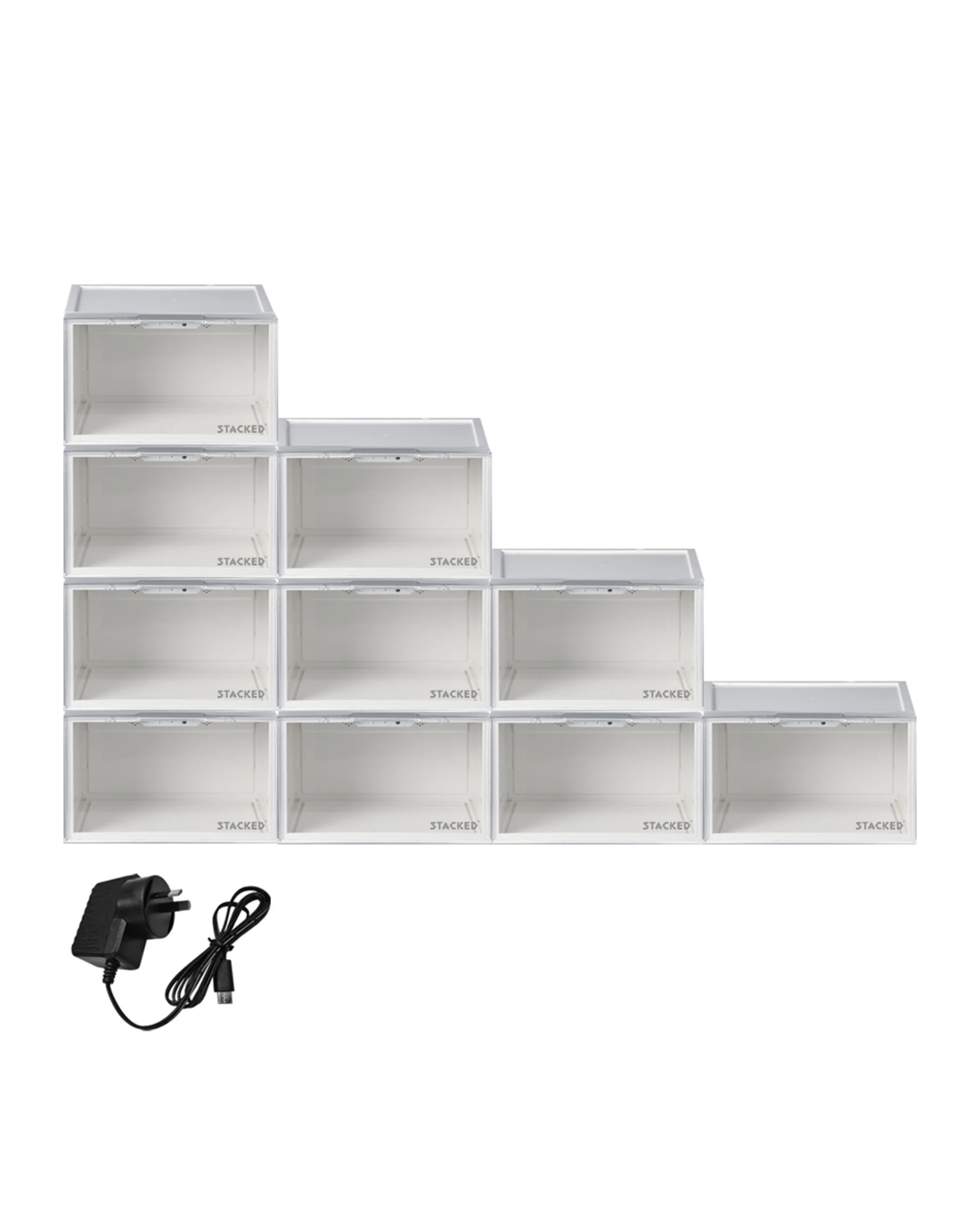 Stacked 10PCS Transparent Plastic Display Shoe Box with LED Lights - Clear