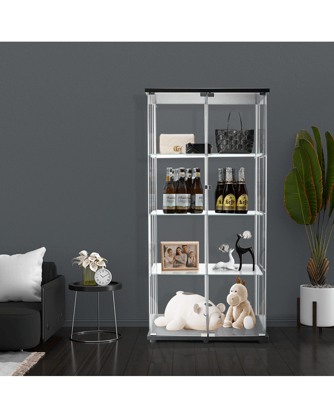 Elevate your home decor with this stylish and functional 4-tier glass display cabinet. Showcase your prized possessions with elegance, while preserving them for years to come. With its sleek design and ample space, it adds a touch of sophistication to any room in your home.