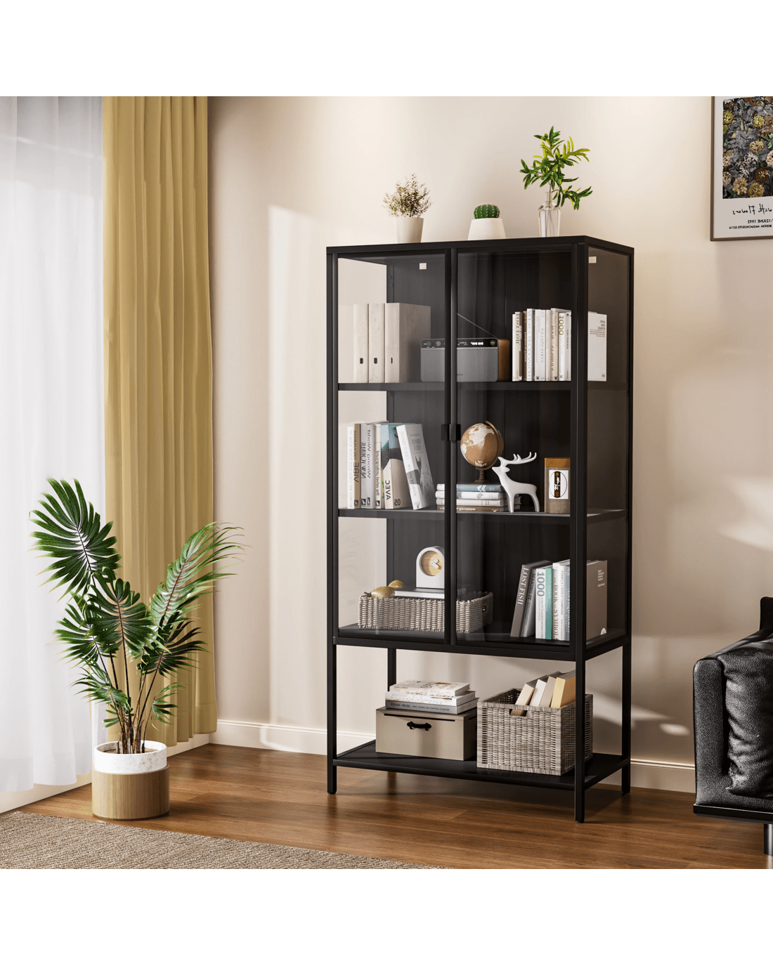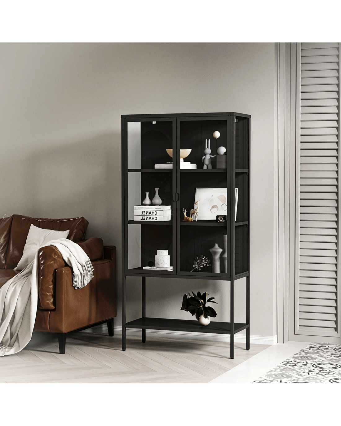 Sold by Sello ProductsStacked Glass Display Cabinet 4-Tier Doubel Doors - Black