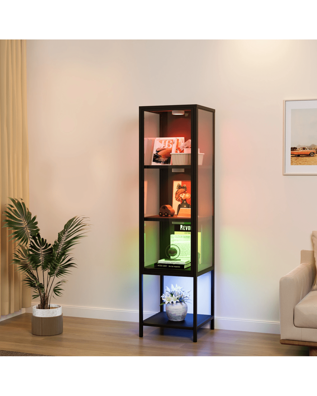Stacked Display Cabinet – Modern 4-Tier Glass Showcase with Magnetic Doors