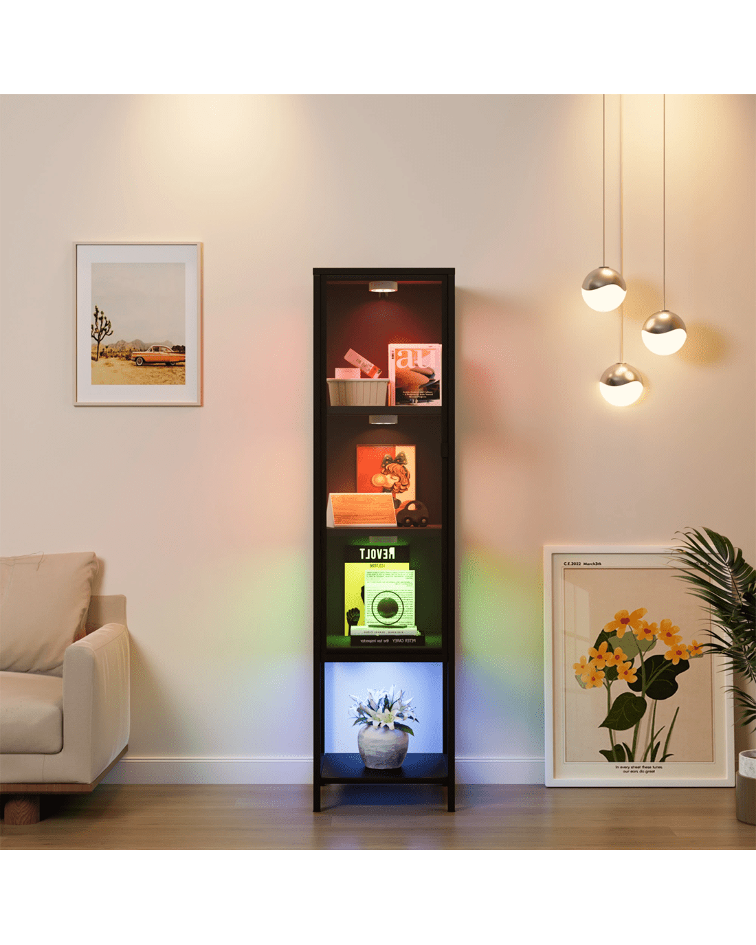 Built with a sturdy frame and 5mm tempered glass, this display cabinet is durable and safe. Adjustable feet provide stable positioning on all surfaces, while anti-fall fittings add extra peace of mind. It’s not just storage – it’s a standout piece.