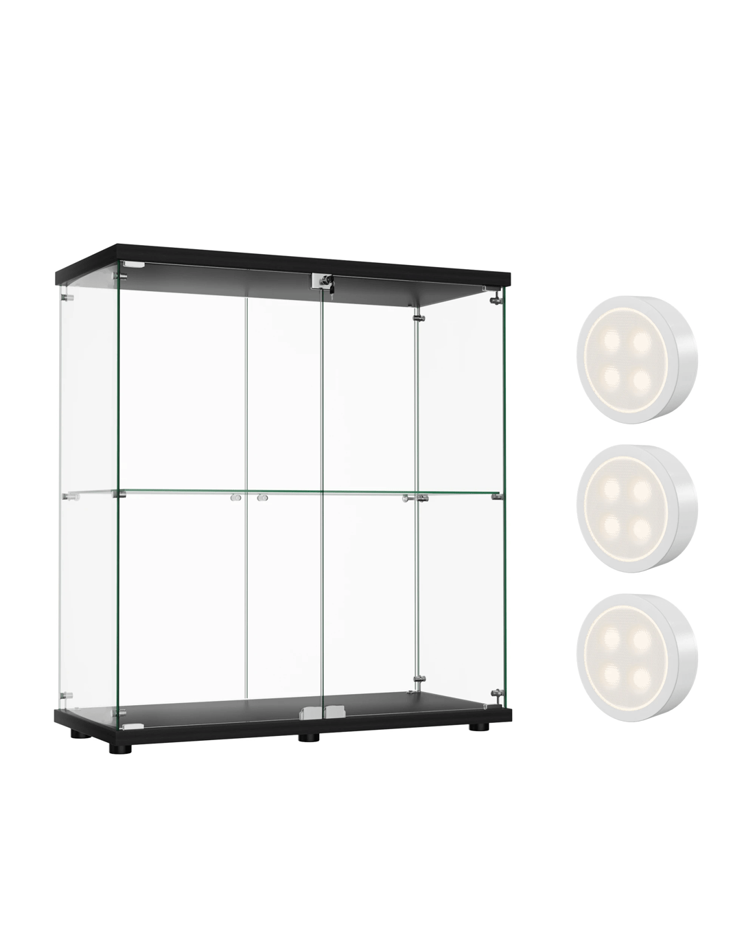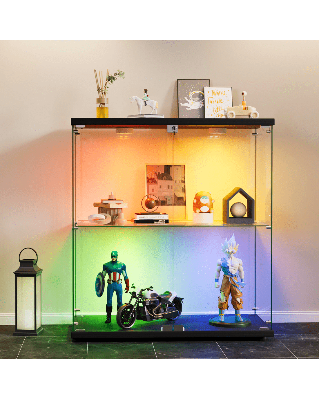 Sold by Sello ProductsStacked Tempered Glass Display Cabinet 3 RGB Lights Collections Lockable Storage
