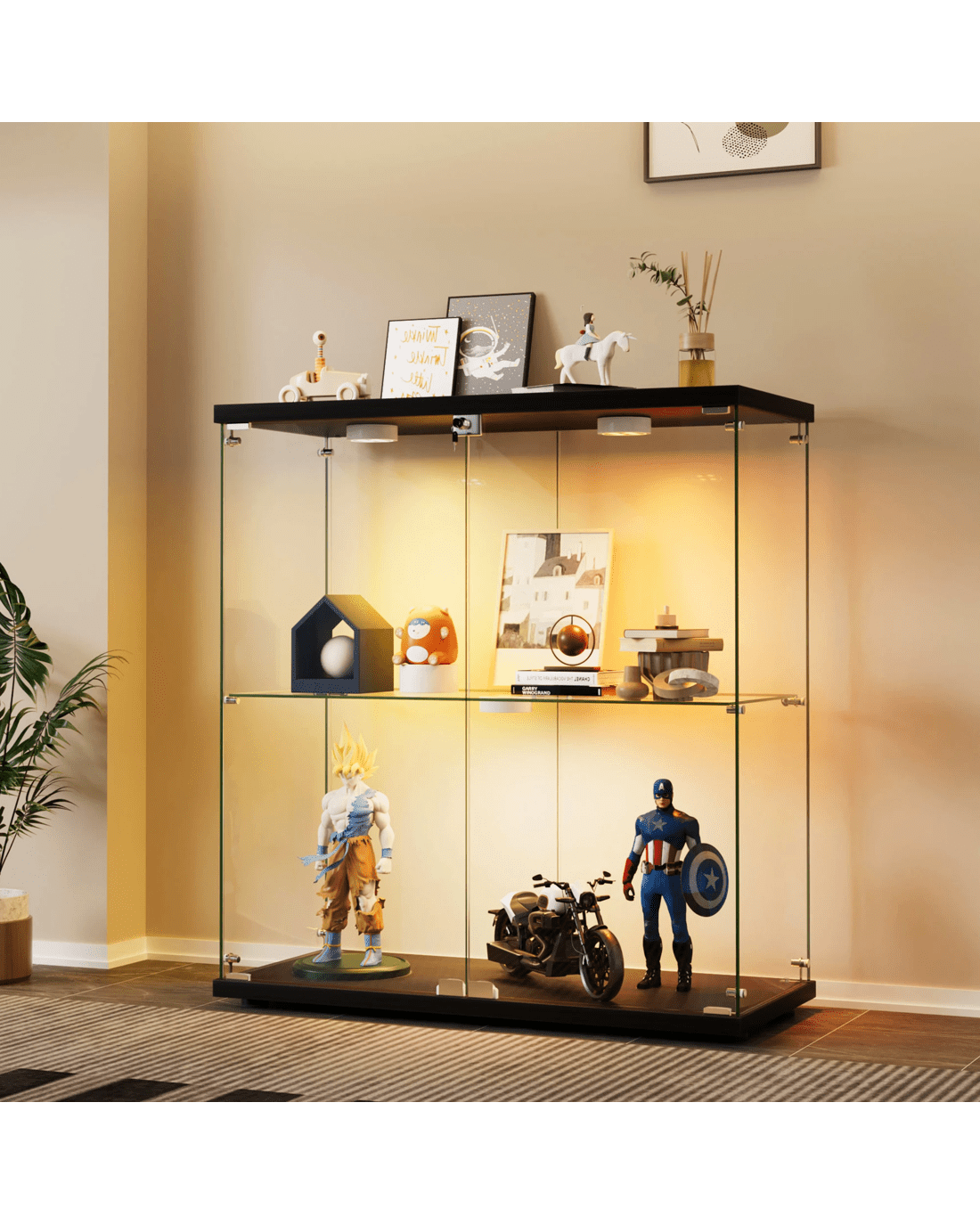 This illuminated display cabinet combines security, style, and sophisticated lighting to create an exceptional showcase for your collections. Its thoughtful design and premium features make it ideal for collectors who want to present their treasured items with both protection and dramatic appeal.