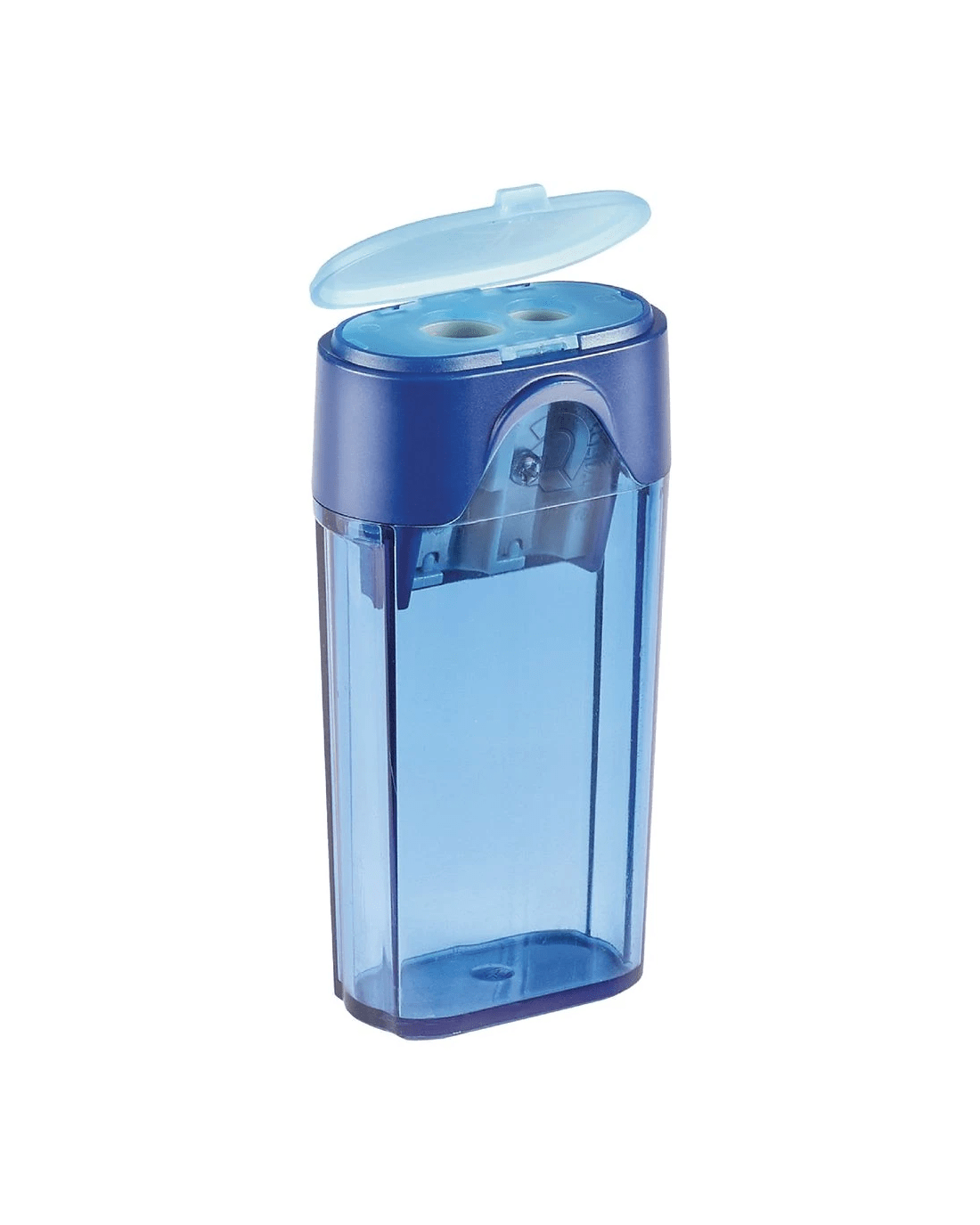 This Staedtler Basic Barrel Sharpener has a double hole design with a plastic sharpener insert and tub to hold shavings. The slim profile design makes it easy to fit into pencil cases, while the hinged cover prevents shavings from spilling out. There is also an extra-long pencil guiding slot that provides optimum sharpening results and prevents wedging, while the holes suits both standard- and jumbo-sized pencils.