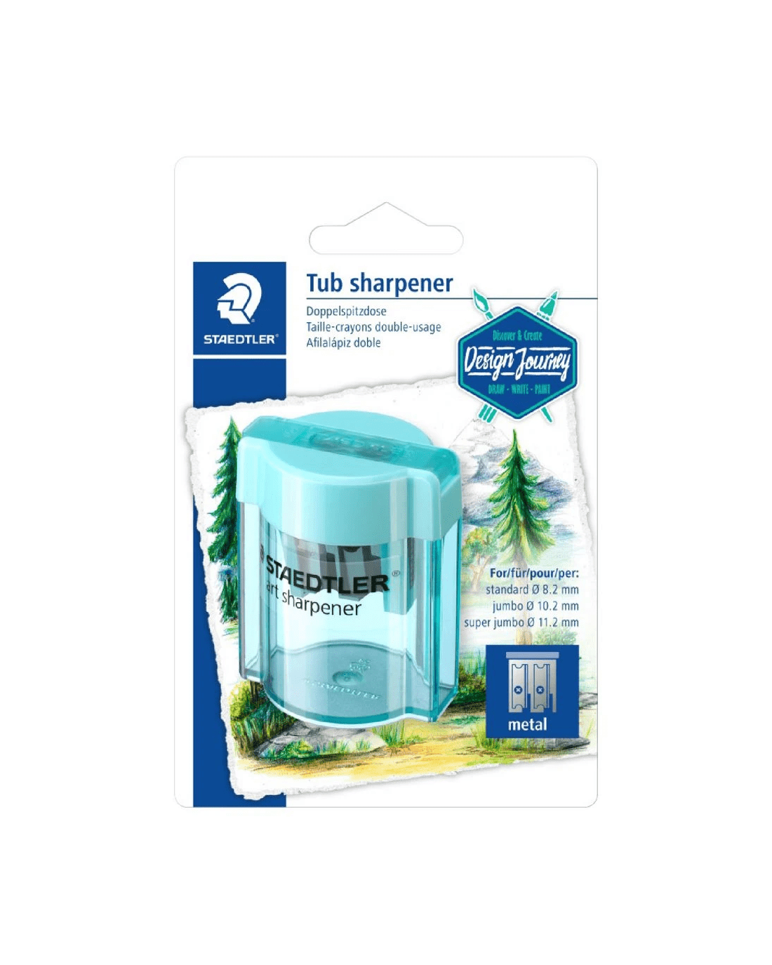 This Staedtler Sharpener has a high-quality metal construction to keep your pencils in top condition. It has two holes, with a conventional and jumbo size opening. There is a large cannister with a flip lid to hold the shavings and to prevent spillage.