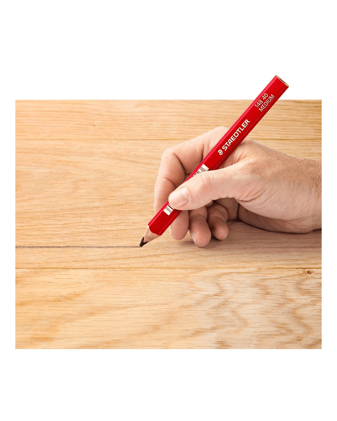 The Staedtler Carpenter's Pencil is a high quality graphite tradesman pencil designed for marking on most surfaces. It needs less sharpening than traditional pencils and has superior breaking strength making it a durable option.