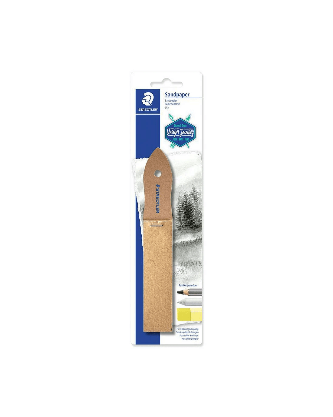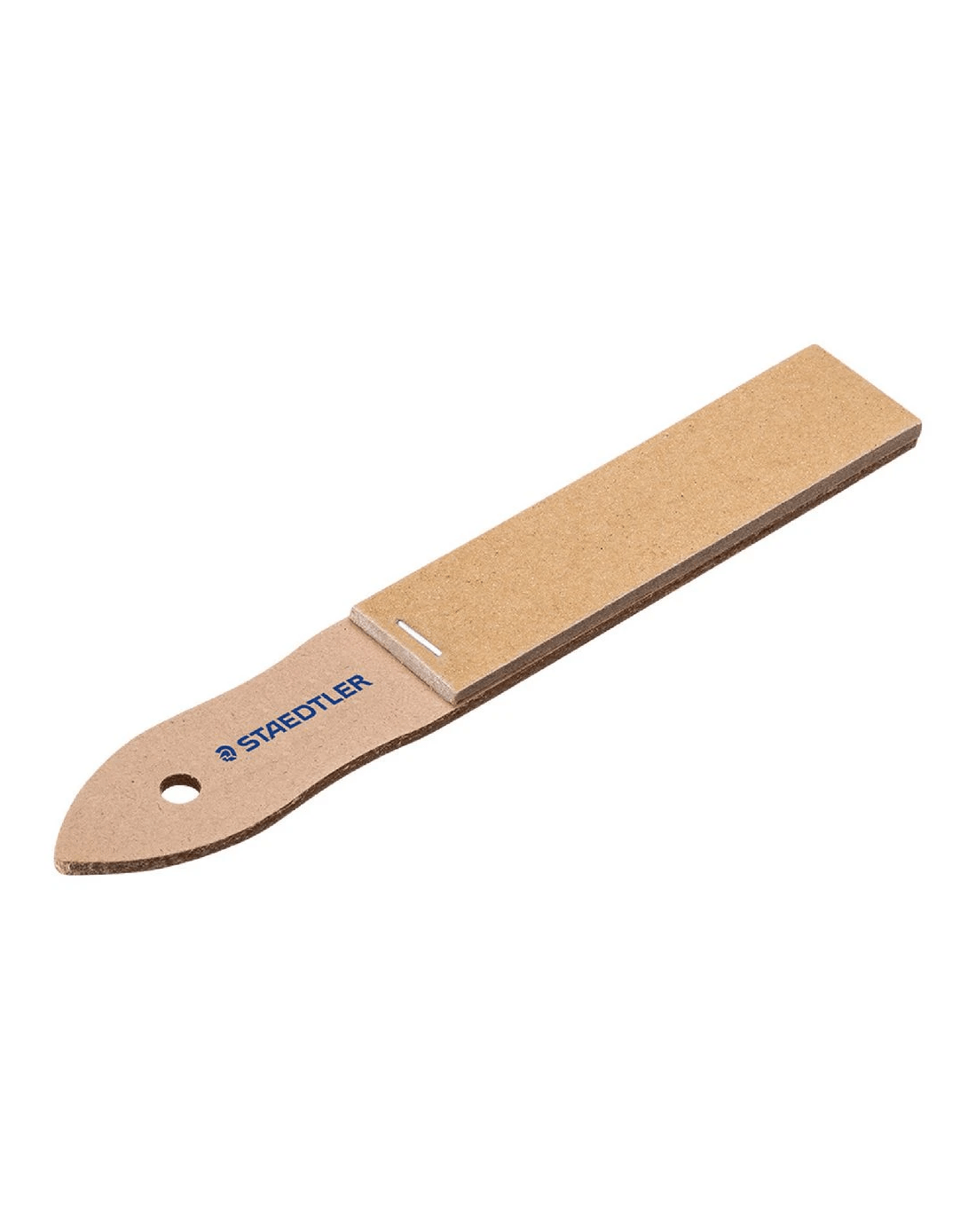 This Staedtler Lead Pointer Sandpaper is designed to sharpen your art tools, including leads, drawing pencils, pastels, charcoal sticks, and more. The sandpaper comes mounted on a wooden handle and is capable of making conical wedges or elliptical points.
