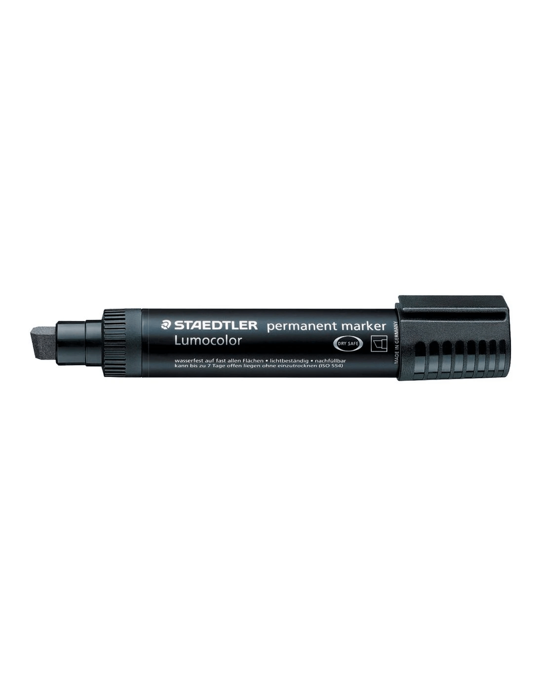 The Staedtler Lumocolor 388 Jumbo Permanent Marker will produce bold lines up to 12.0 mm thanks to a thick chisel nib. This marker has a lightweight polypropylene barrel which is comfortable to use, and the cap features a pocket clip so you can take it on the go. This marker has dry safe technology, and you can leave the lid off for up to a week without it drying out.