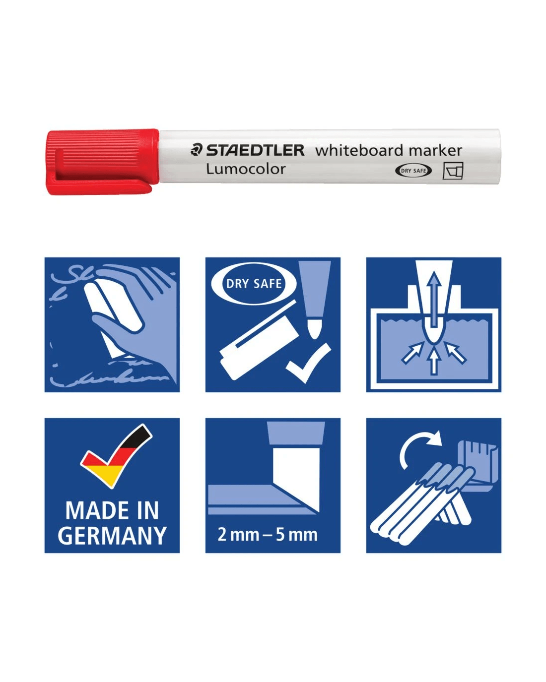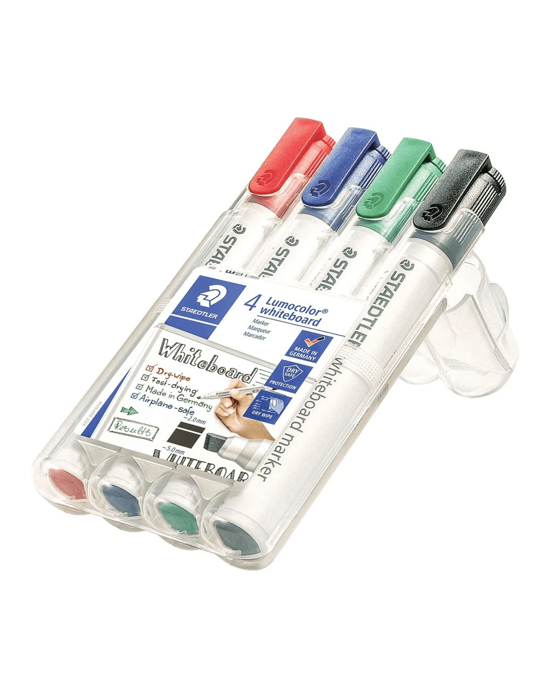 This 4 pack of Staedtler Whiteboard Markers is ideal for the classroom, workplace or home. The markers have an innovative ink technology that allows you to leave a marker uncapped for days at a time without it drying up.