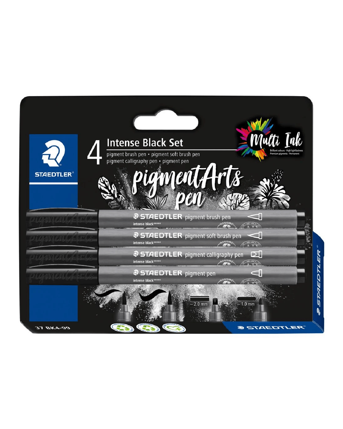These Intense Black Pigment Art Pens from Staedtler Mars have assorted tips including brush, soft brush, calligraphy and bullet for a wide variety of art and writing techniques, all in Staedtler’s intense no. -99 black. They have innovative quick-dying ink that can be overpainted after a few seconds without smudging or smearing.