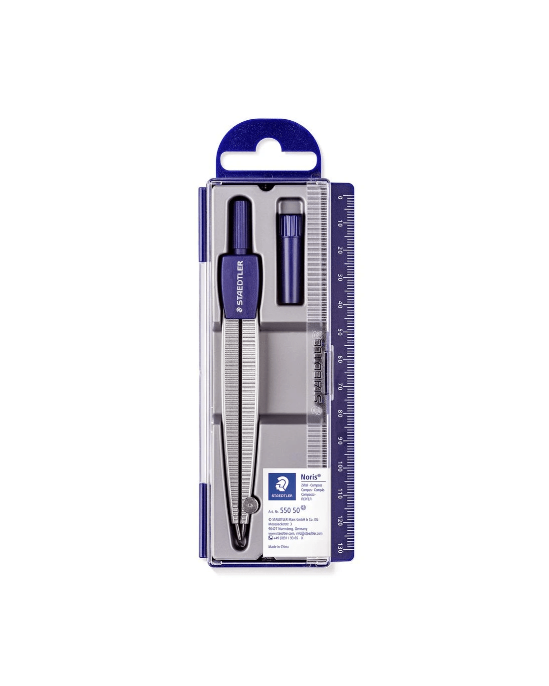 This Noris Club School Compass contains a precision compass for drawing perfect circles or arcs. It has an obtuse angled safety needle so that you can steadily hold the compass in place while you draw.
