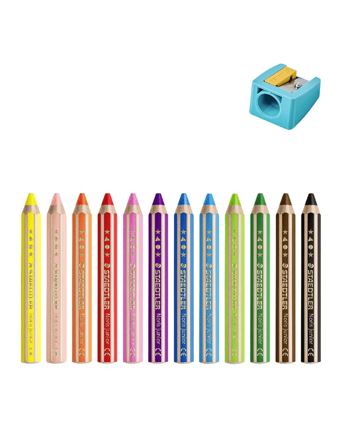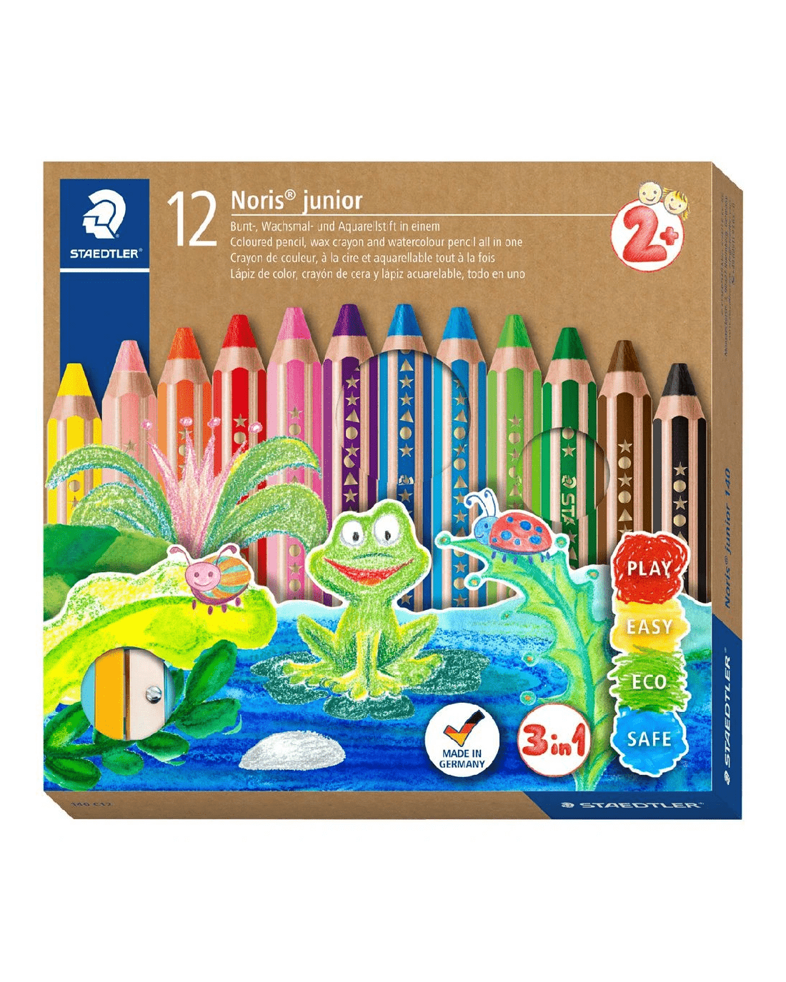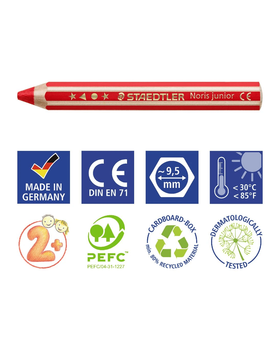 These Staedtler Noris Junior Pencils are perfect for boundless creativity and different artistic projects thanks to their 3-in-1 design. Use each one as a colouring pencil, a crayon, and a watercolour paint on surfaces like paper, cardboard, and glass. The compact format is perfect for small hands, while the almost shatter-proof construction is thanks to the very thick lead inside.