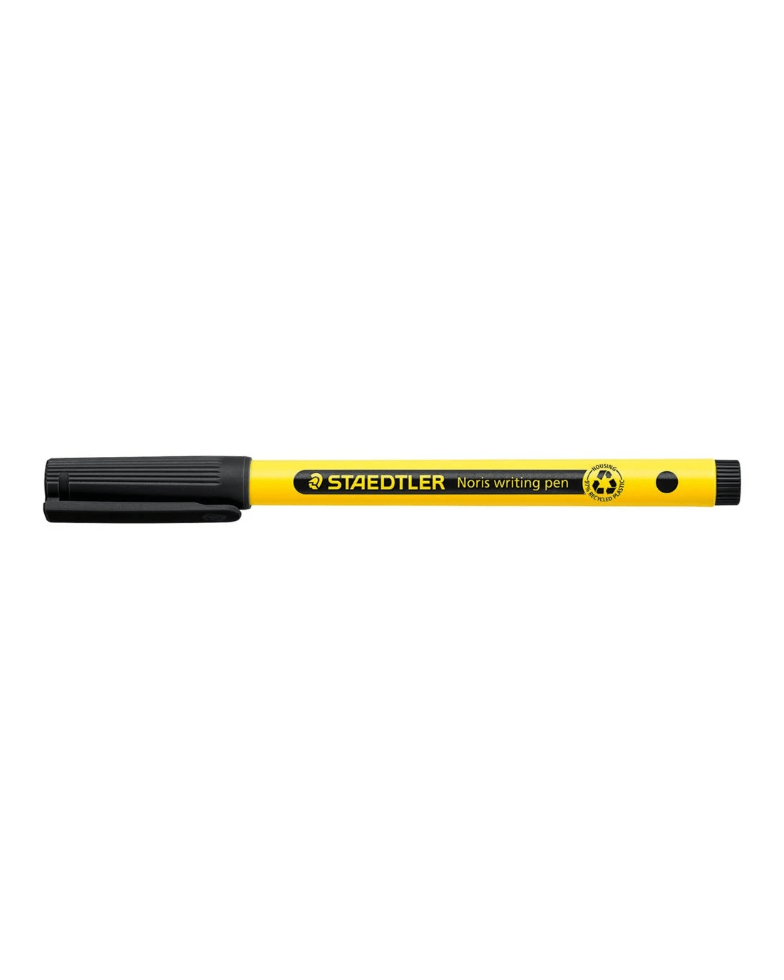 This Staedtler Noris Writing Pen is the ideal pen for home, school or office. It's got a stable, pressure resistant tip, PP barrel and cap to guarantee long service life, and the housing is made of 97% recycled plastic according to ISO 14021. Plus, the water-based ink washes easily out of most textiles, is dry safe and can be left uncapped for days without drying up, and is airplane safe with automatic pressure equalisation that prevents the pen from leaking on board aircrafts.