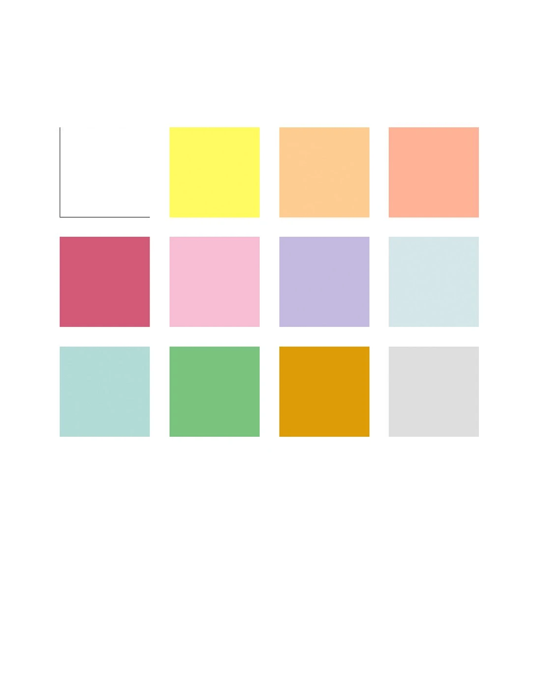 - This 12 pack contains the following colours: white, light yellow, peach, salmon, pink, light carmine, pastel violet, pastel blue, light turquoise, pale green, gold ocher, and grey.
