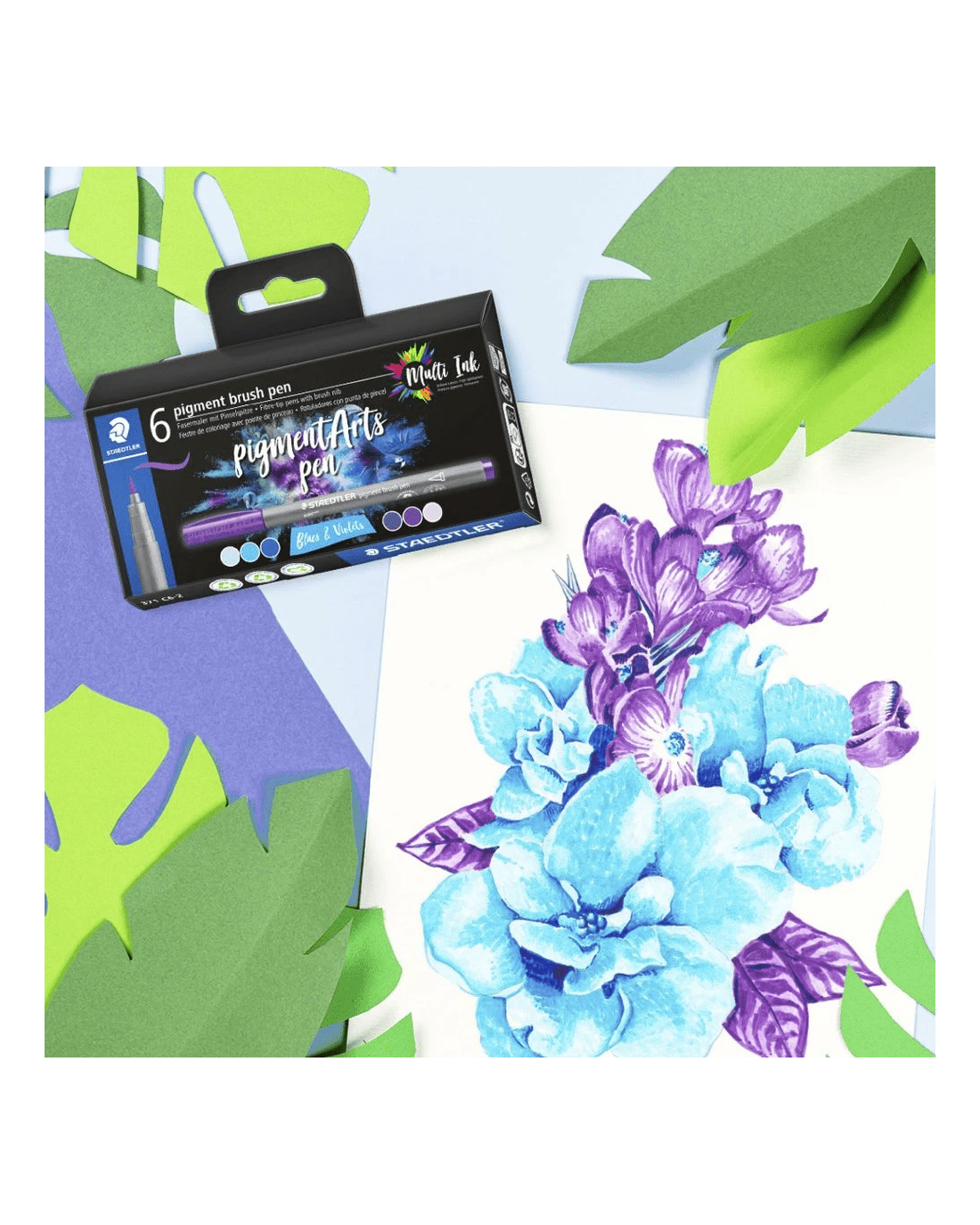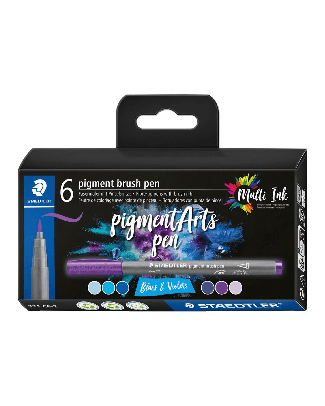 Sold by OfficeworksStaedtler Pigment Arts Brush Pens Blues & Violets 6 Pack
